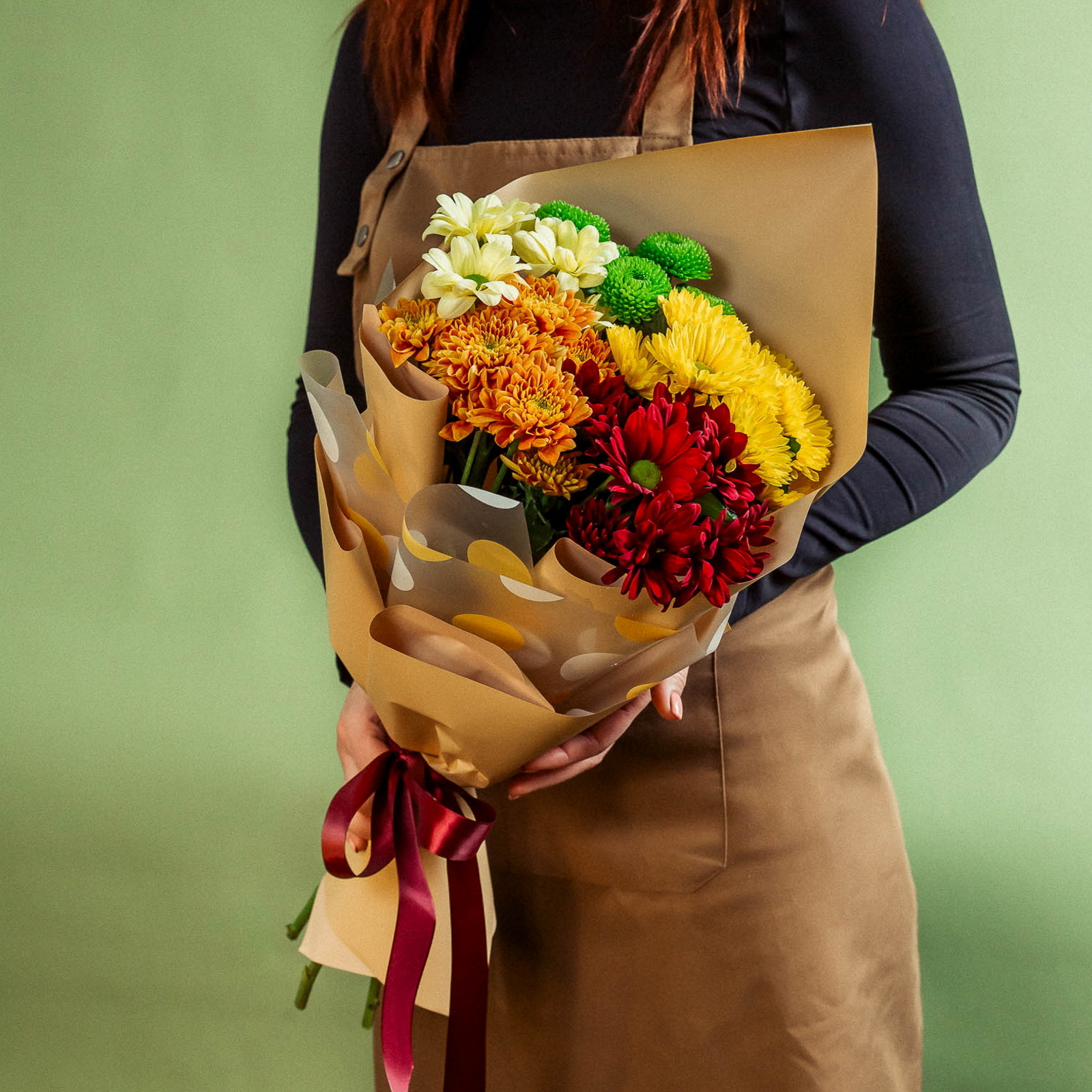 Букет из разноцветных хризантем (5 шт.) в наличии