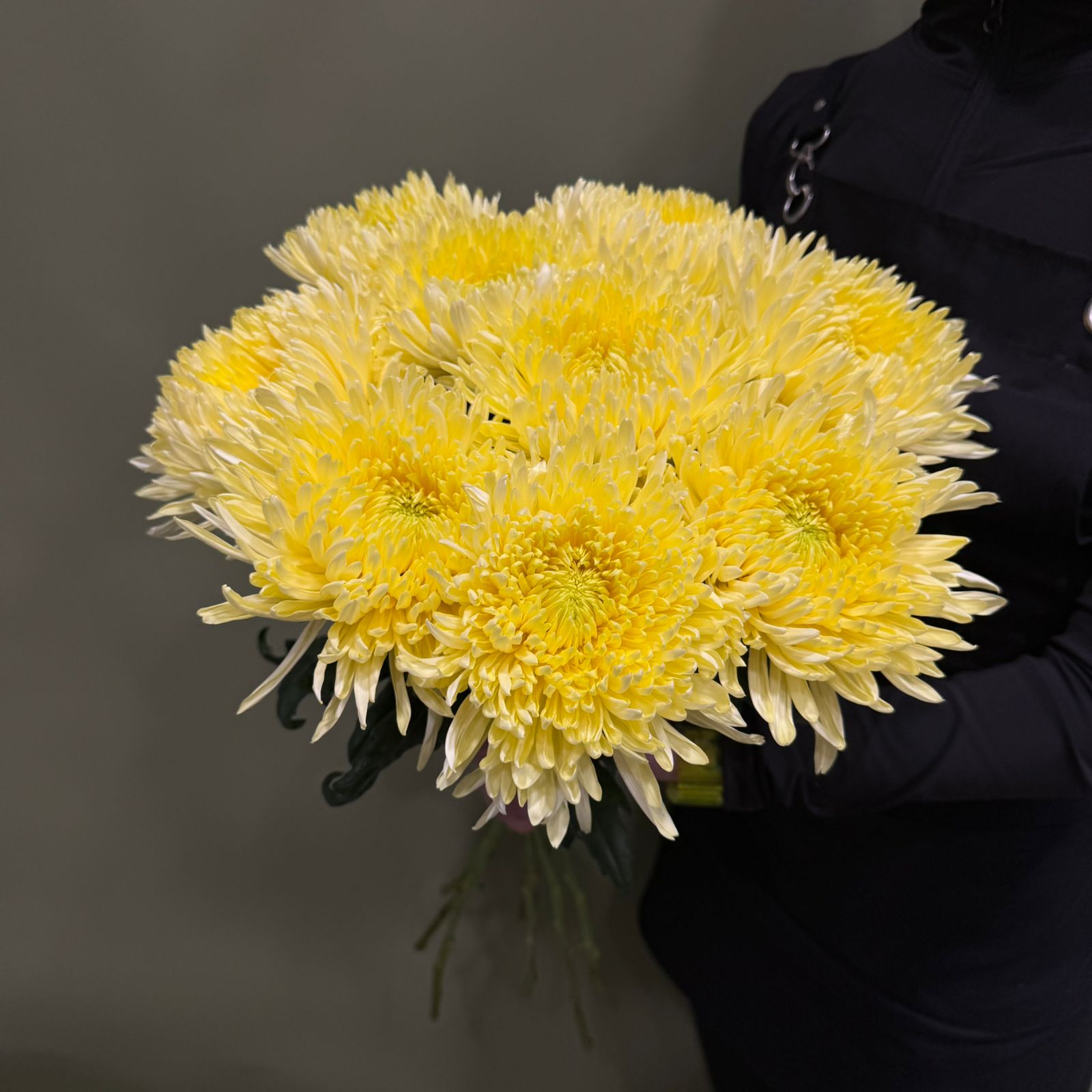 Букет из желтых одноголовых хризантем (9 шт.) в наличии