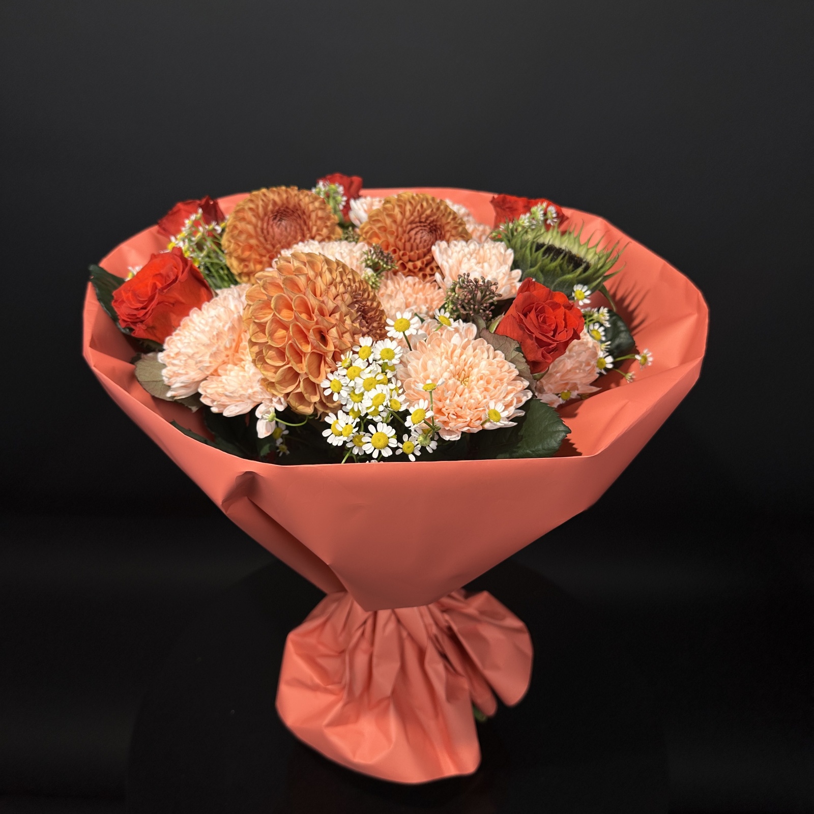 Состав: роза 4, хризантема кустовая 3 и прочее.