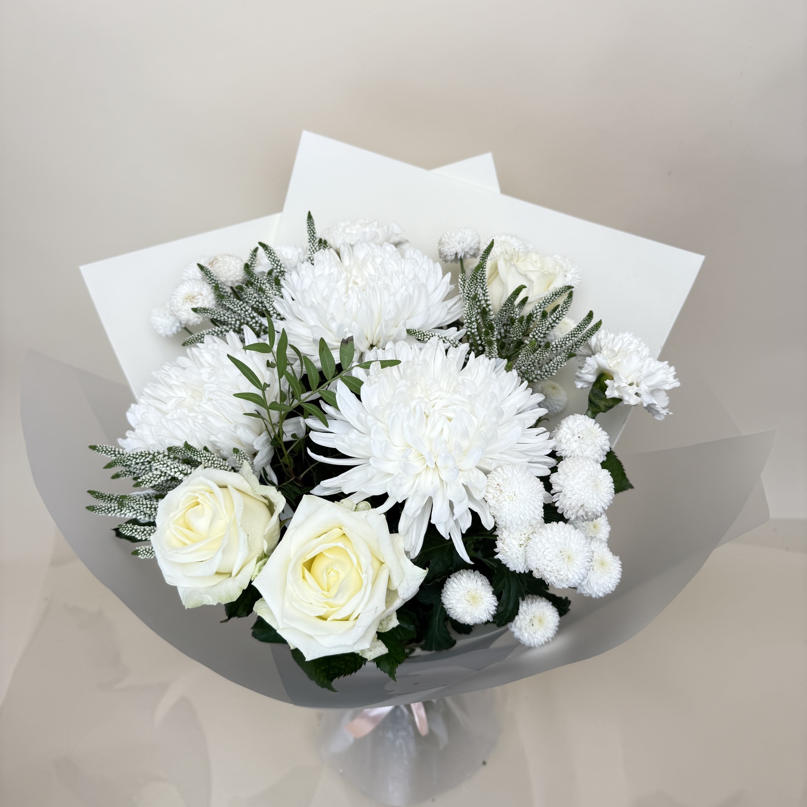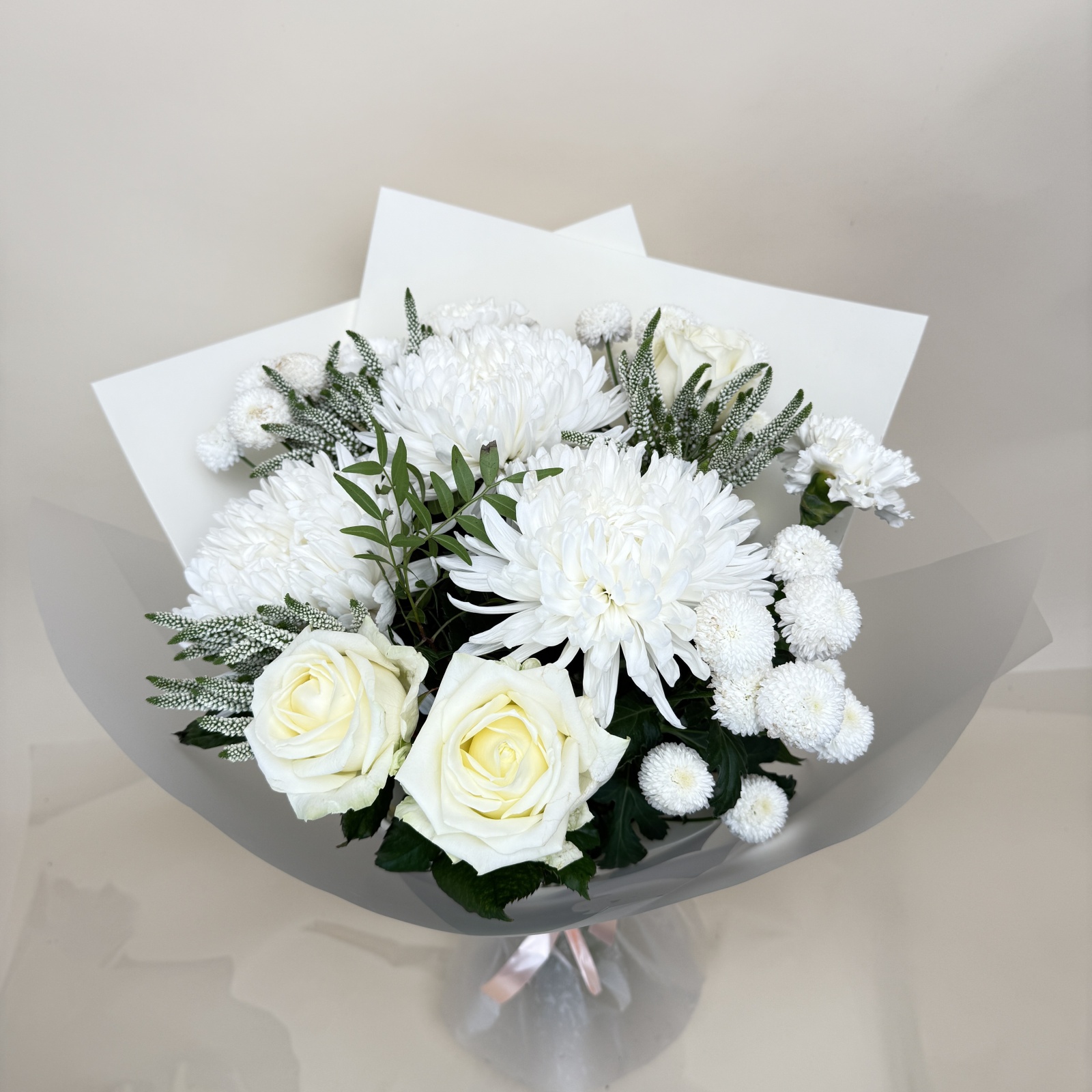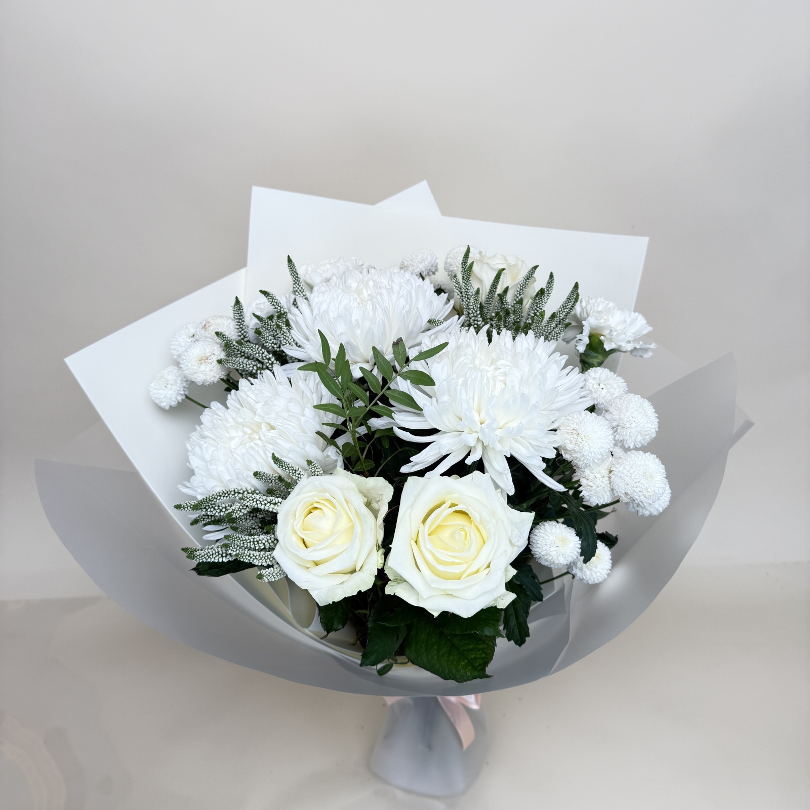 Состав: гвоздика 4, роза 3, хризантема кустовая 3, хризантема 3 и прочее. под заказ