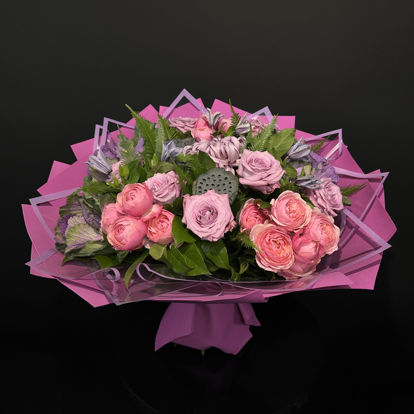 Состав: роза 7, роза кустовая 3, клематис 3, хризантема 1, салал 0,7 и прочее. под заказ