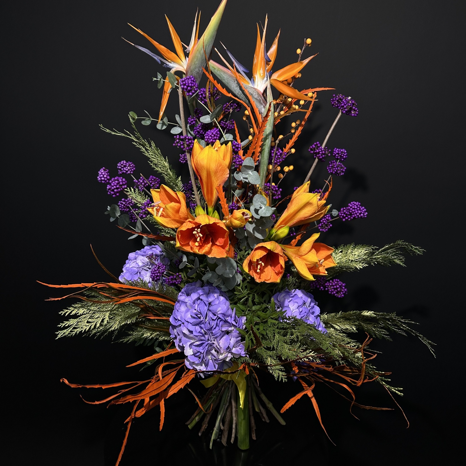 Состав: гортензия 3, гиппеаструм 2, эвкалипт 1, фисташка 0,8 и прочее. под заказ