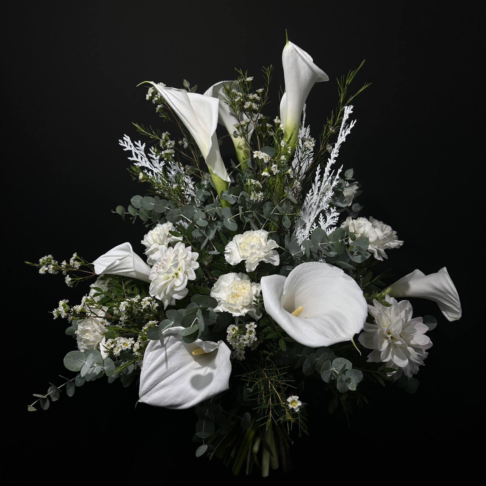 Состав: гвоздика 7, хамелациум 4, эвкалипт 2, цветок ванды 2, фисташка 0,5 и прочее.