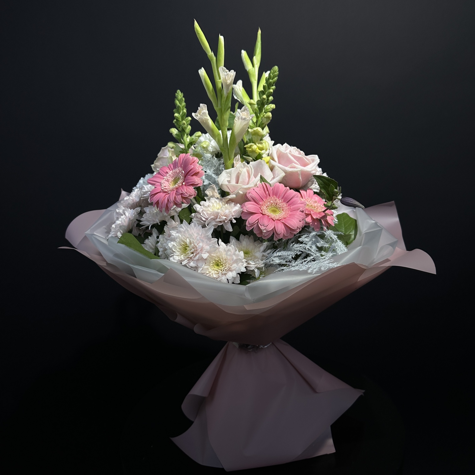 Состав: хризантема кустовая 4, клематис 3,5, роза 3, гербера 3, антирринум 2, гладиолус 2 и прочее. под заказ