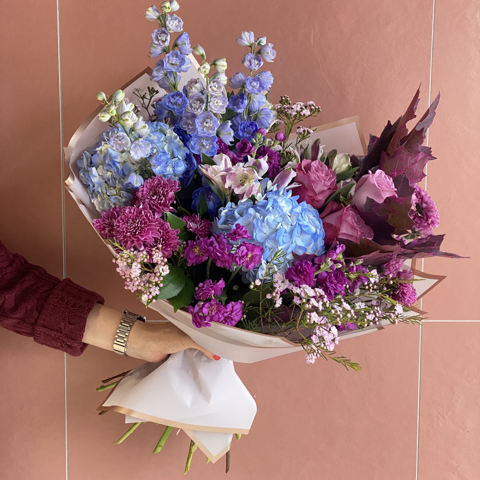 Состав: роза 5, альстромерия 3, хризантема кустовая 3, роза кустовая 2, хризантема 2, фисташка 1, гортензия 1, ветка цимбидиум 0,3 и прочее. под заказ