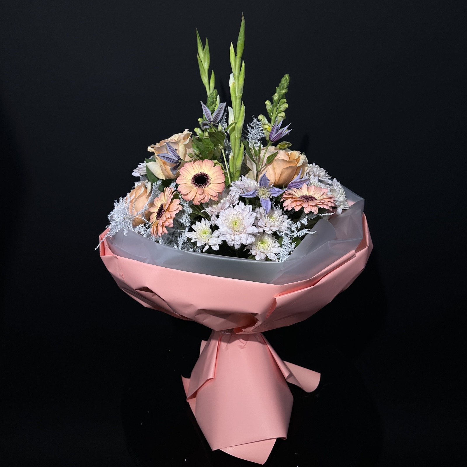 Состав: роза 4, хризантема кустовая 4, клематис 3,5, гладиолус 3, антирринум 2, салал 0,2 и прочее. в наличии