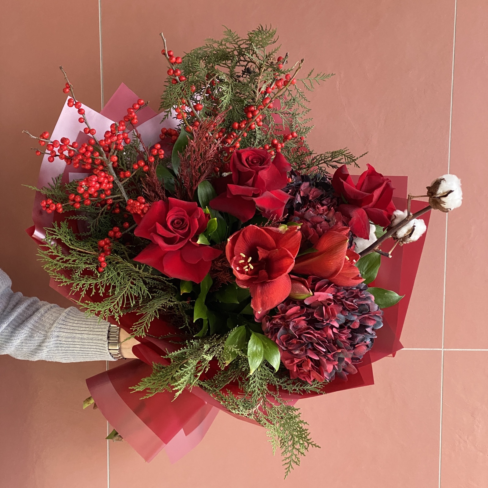 Состав: роза 3, гортензия 2, гиппеаструм 1, рускус 0,5 и прочее.