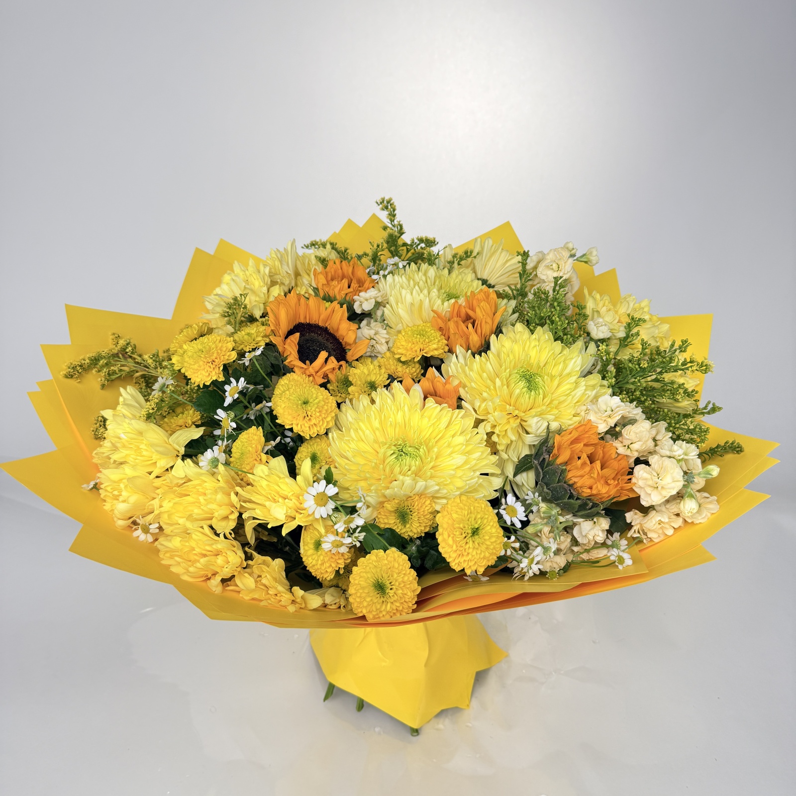 Состав: хризантема кустовая 12, маттиола 3, солидаго 3, хризантема 3 и прочее. в наличии