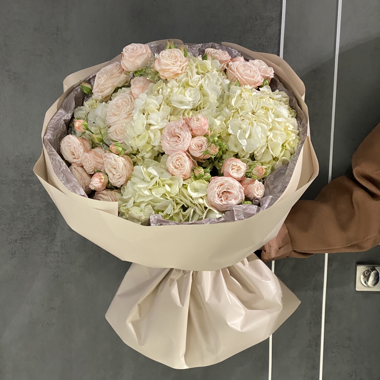 Состав: гортензия 5, роза кустовая 4 и прочее. под заказ