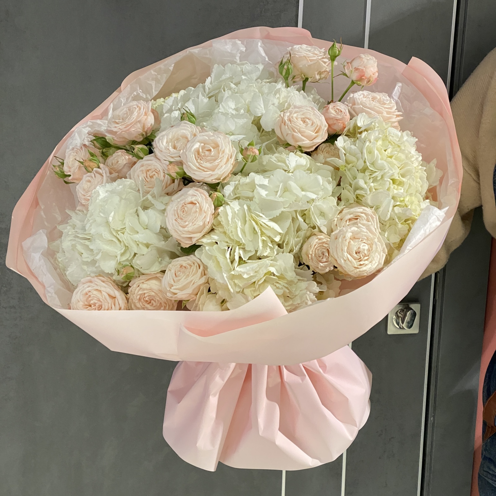 Состав: гортензия 5, роза кустовая 4 и прочее.