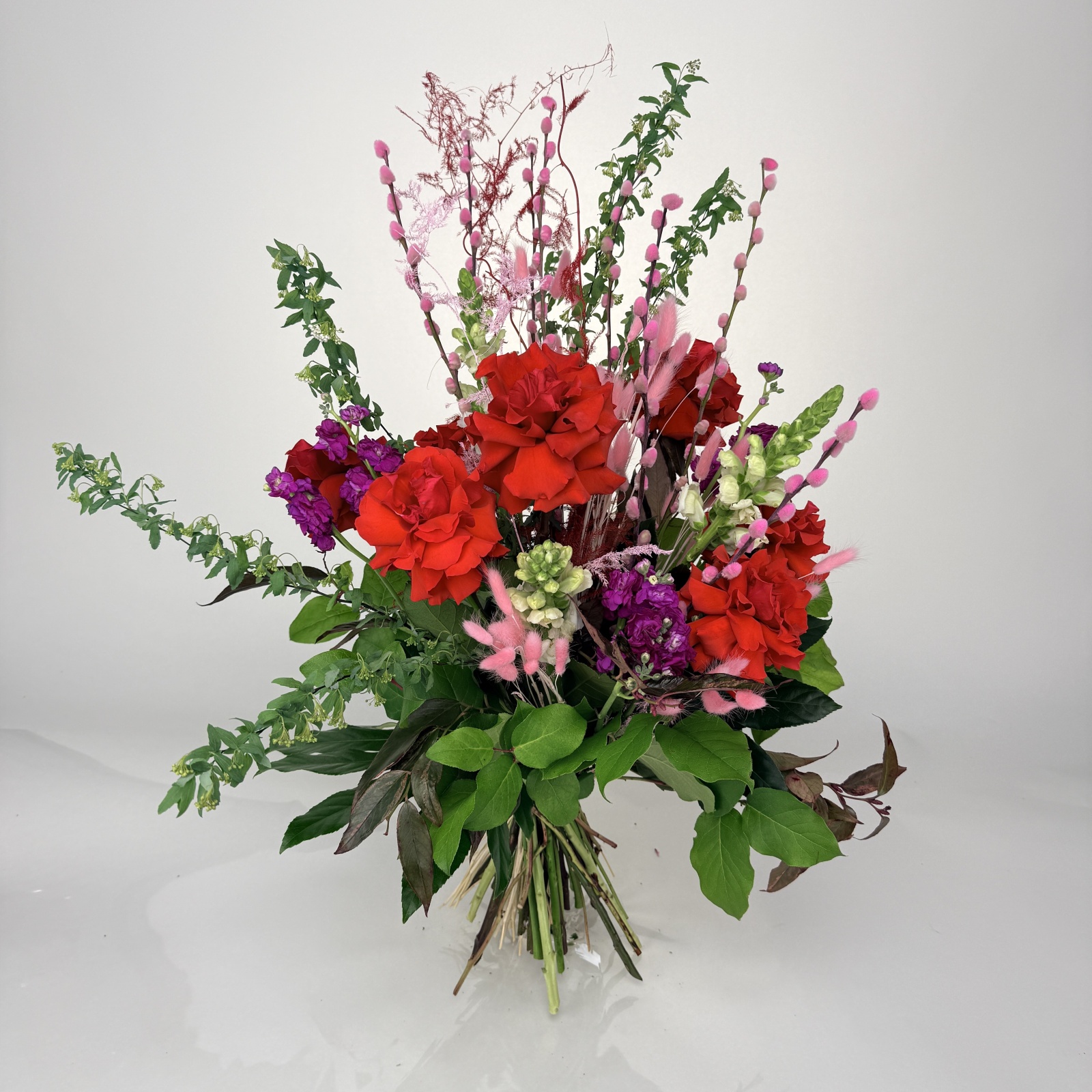 Состав: роза 9, аралия 5, маттиола 4, антирринум 4, салал 0,5 и прочее. в наличии