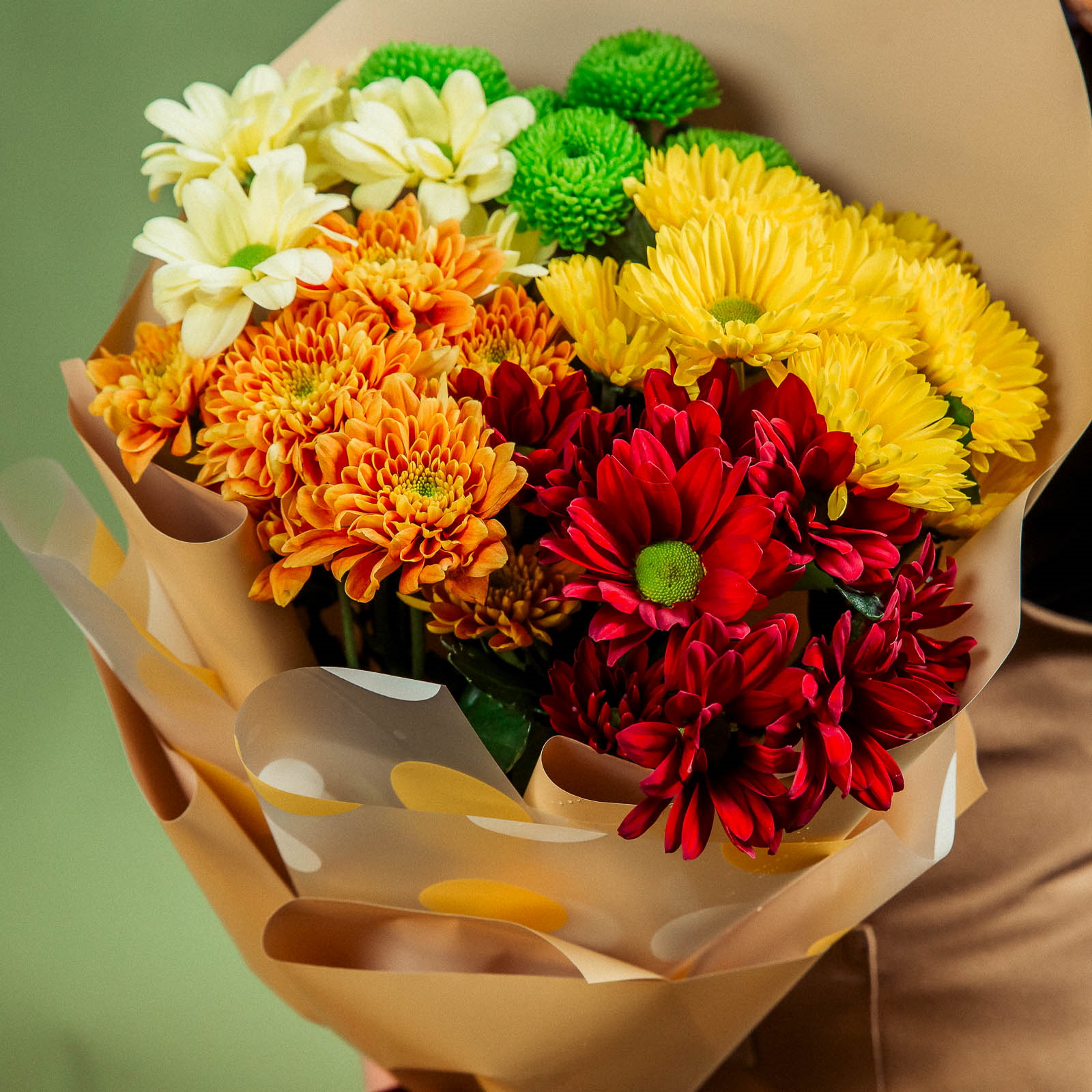Букет из разноцветных хризантем (5 шт.) в наличии