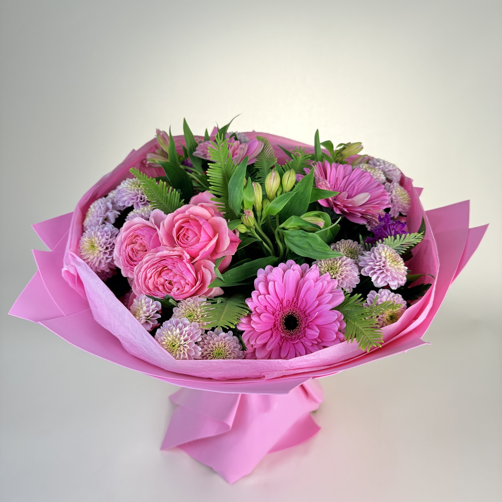 Состав: хризантема кустовая 5, гербера 3, анемон 3, альстромерия 3, роза кустовая 1, роза 1, рускус 0,5 и прочее. под заказ