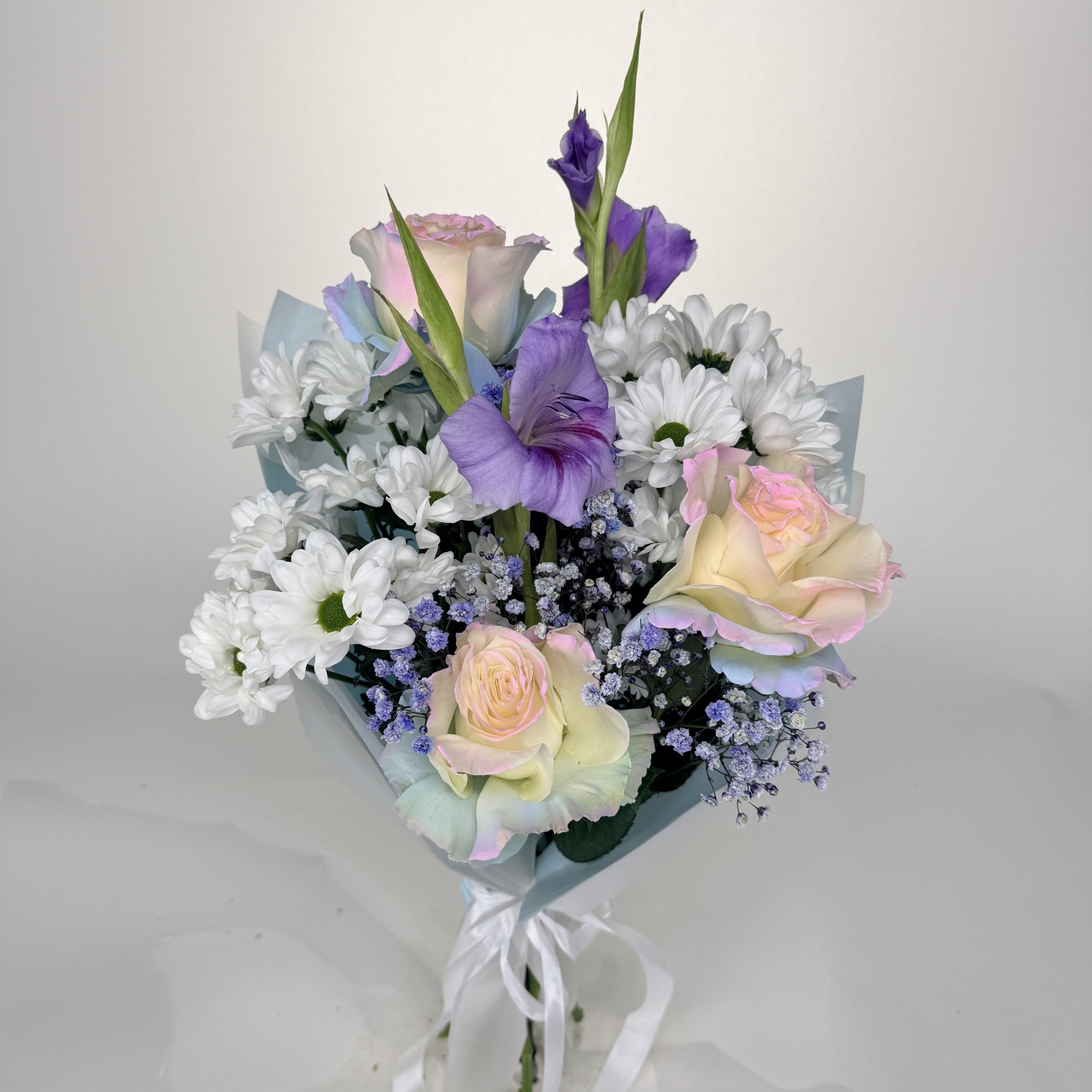 Состав: хризантема кустовая 3, роза 2, гладиолус 2 и прочее. под заказ