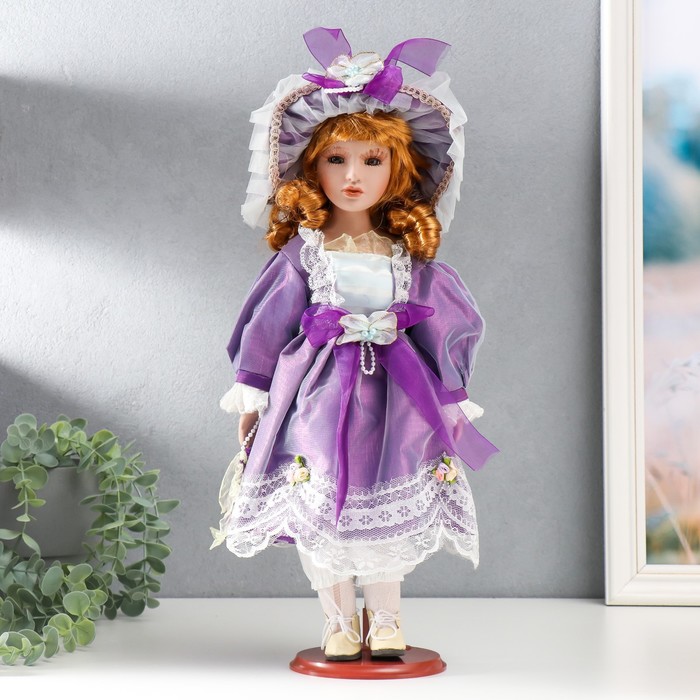 Кукла коллекционная керамика "Малышка Лида в фиолетовом платьице" 40 см