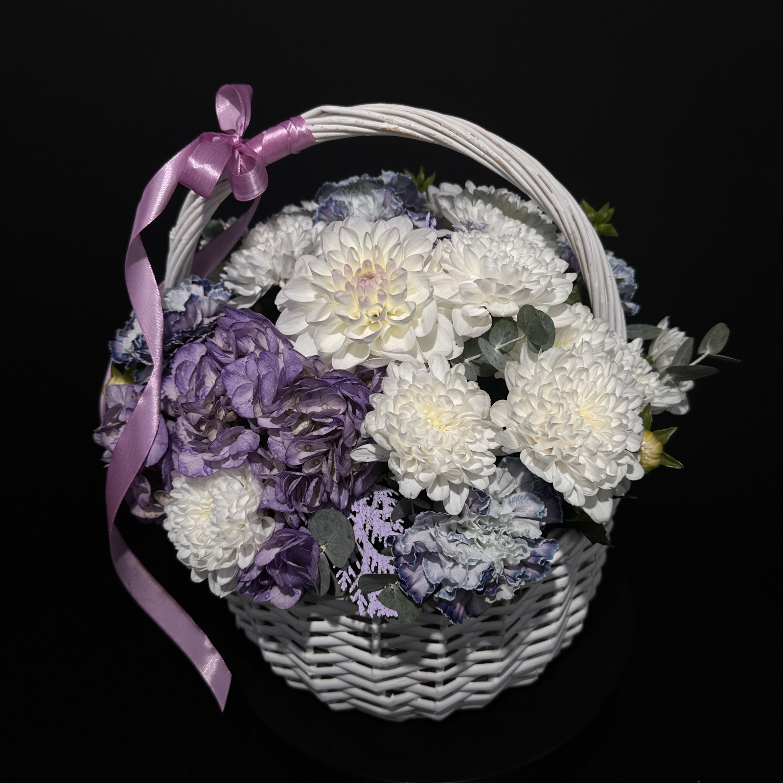 Состав: гвоздика 4, цветок ванды 3, хризантема кустовая 2, гортензия 1, эвкалипт 1 и прочее. под заказ