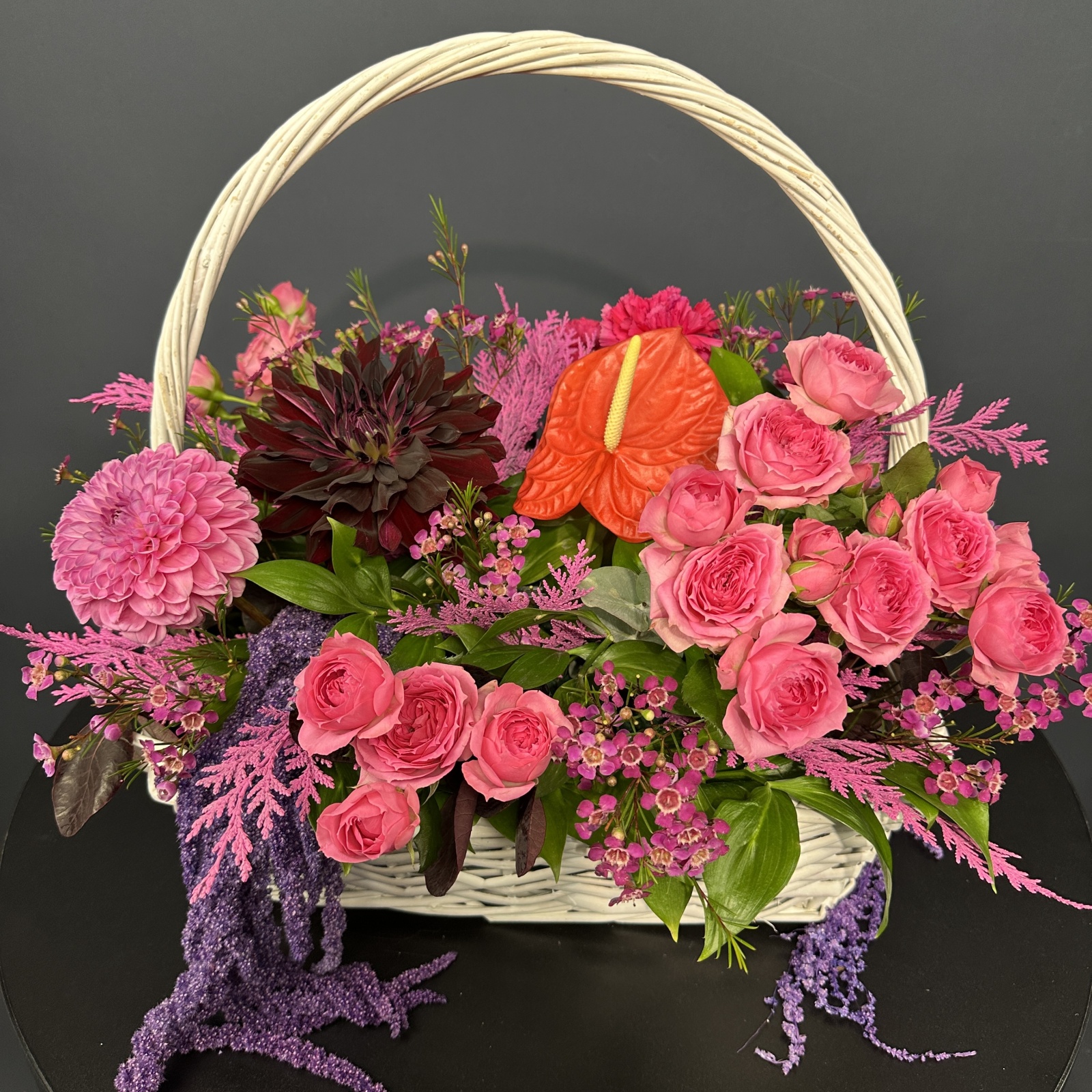 Состав: гвоздика 3, роза кустовая 1, хамелациум 1 и прочее. под заказ