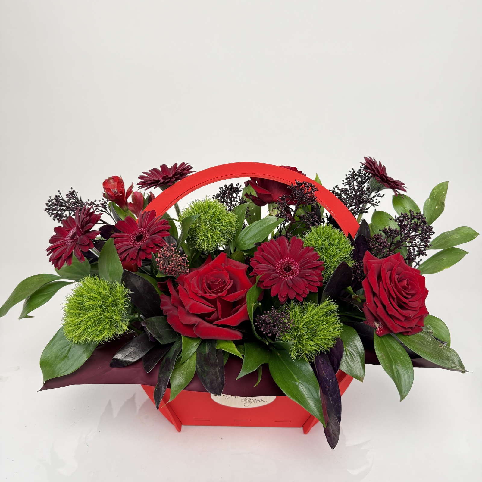 Состав: гербера 6, роза 3, гвоздика 3, рускус 0,5 и прочее. под заказ
