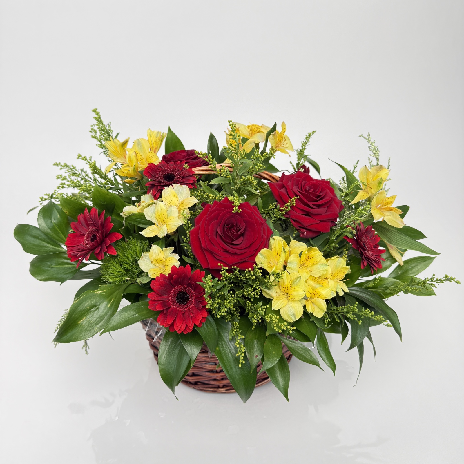 Состав: гербера 4, альстромерия 4, роза 3, солидаго 3, хризантема кустовая 2, гвоздика 1 и прочее. в наличии
