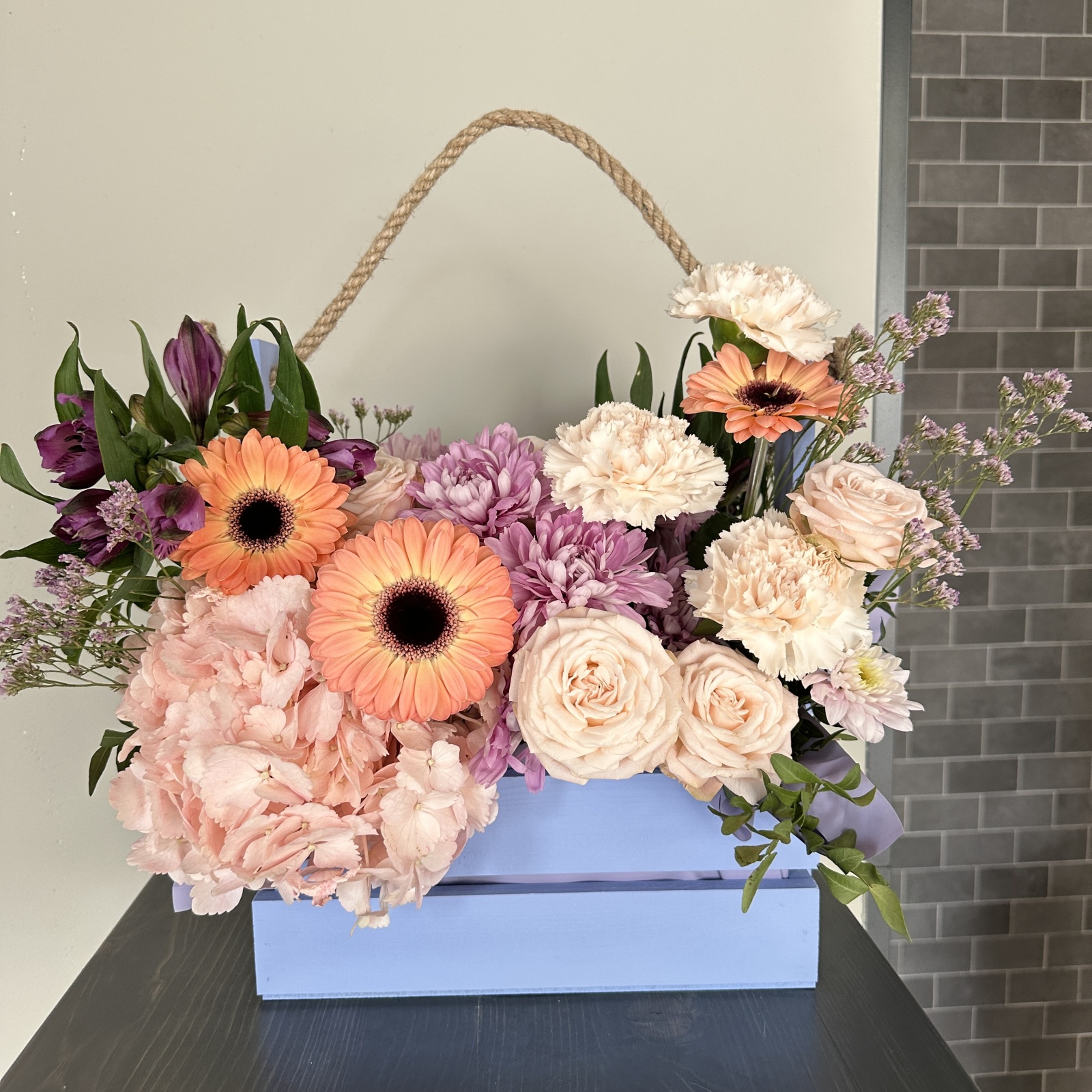 Состав: гвоздика 5, гербера 3, альстромерия 2, хризантема кустовая 2, роза кустовая 1, гортензия 1, лимониум 1, фисташка 0,2 и прочее. под заказ