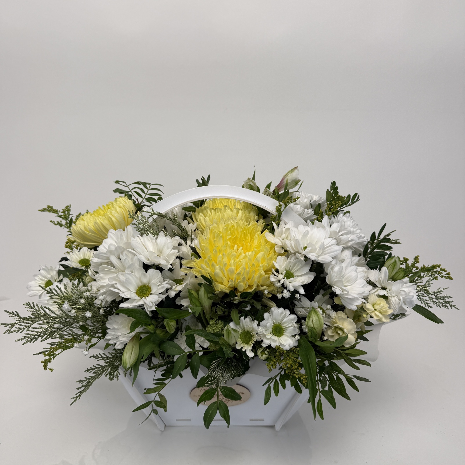 Состав: хризантема кустовая 4, хризантема 3, альстромерия 2, гвоздика 2 и прочее. в наличии