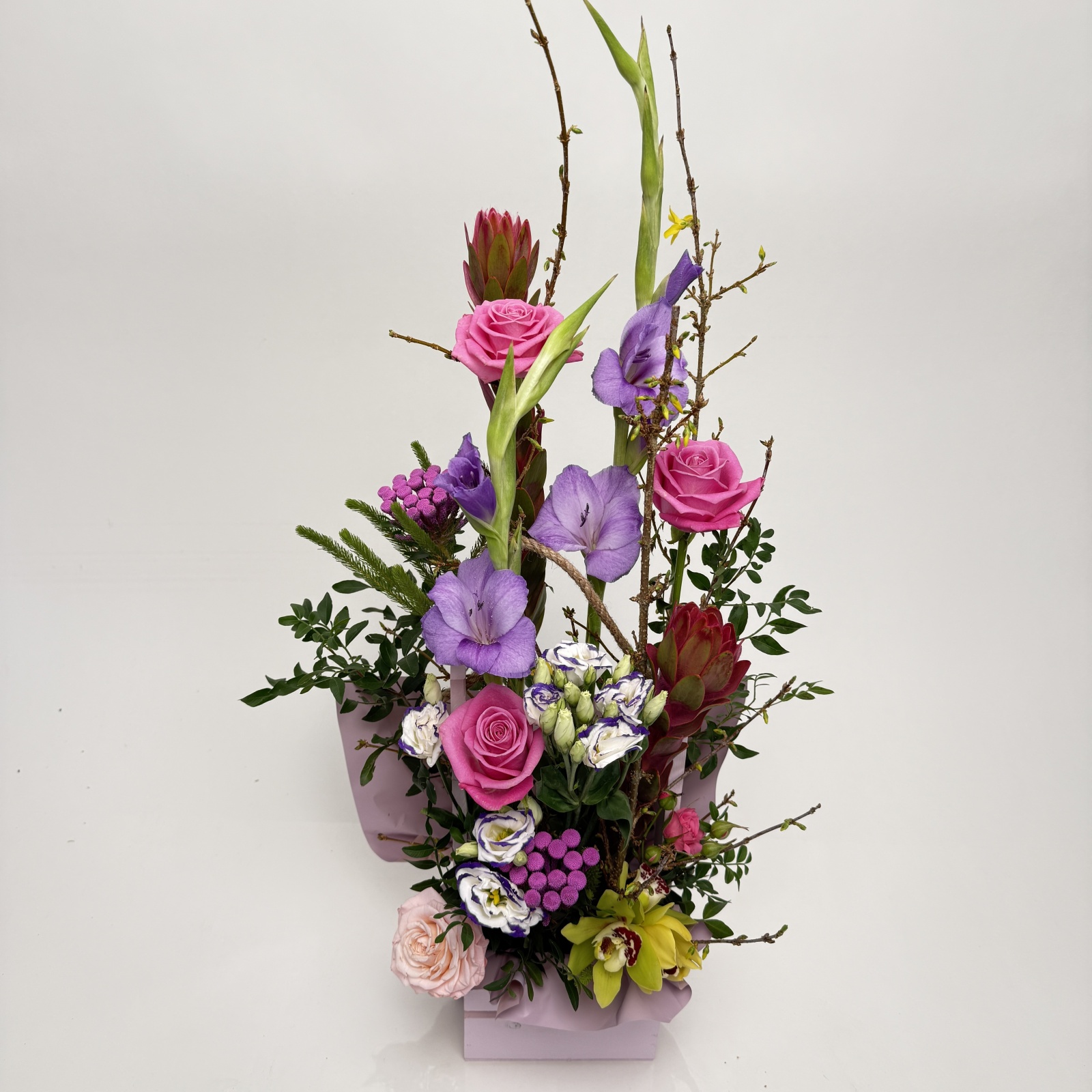 Состав: роза 3, гладиолус 2, леукадендрон 2, лизиантус 1, бруния 1, фисташка 0,5 и прочее. в наличии