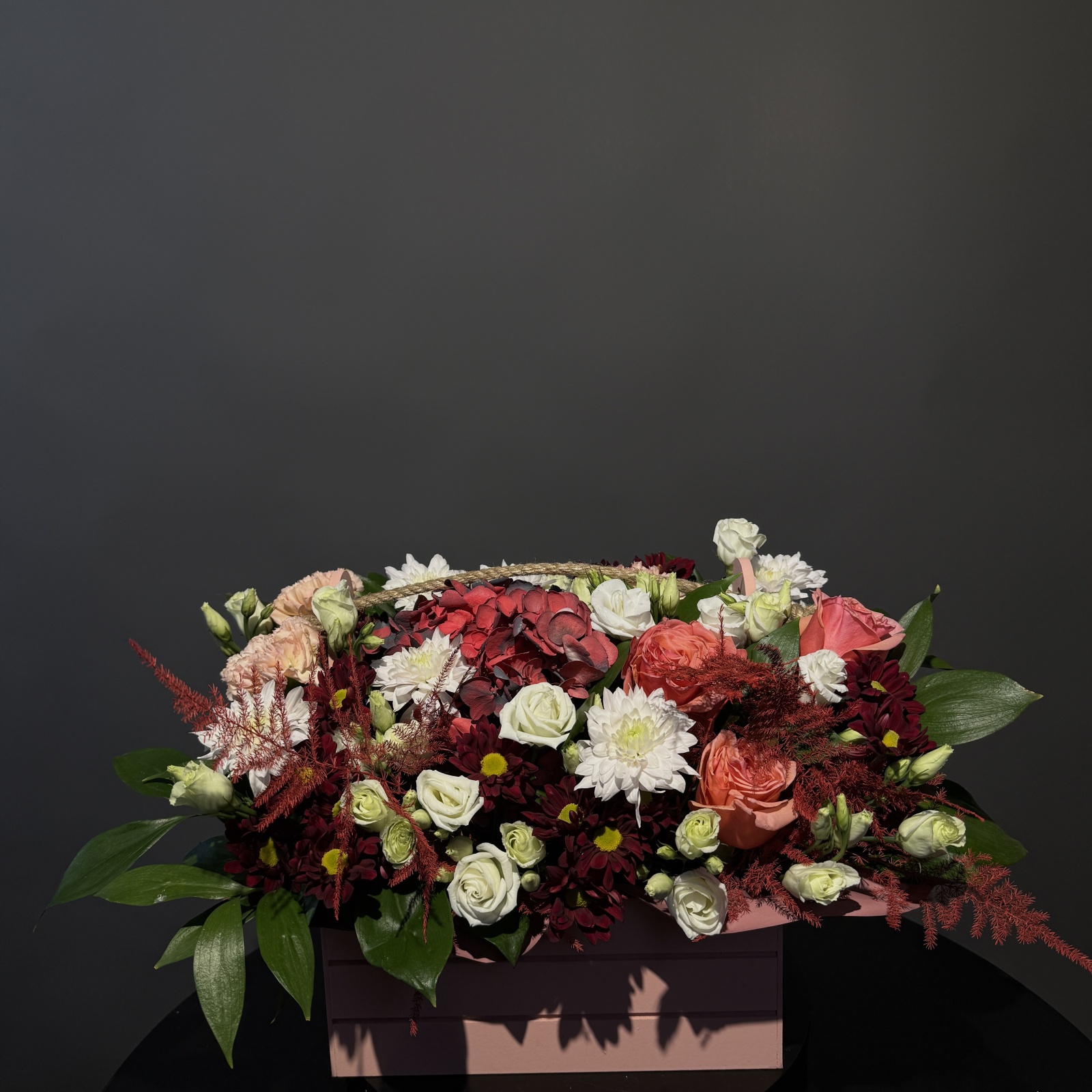 Состав: роза 6, гвоздика 3, гортензия 1, лизиантус 1 и прочее. в наличии