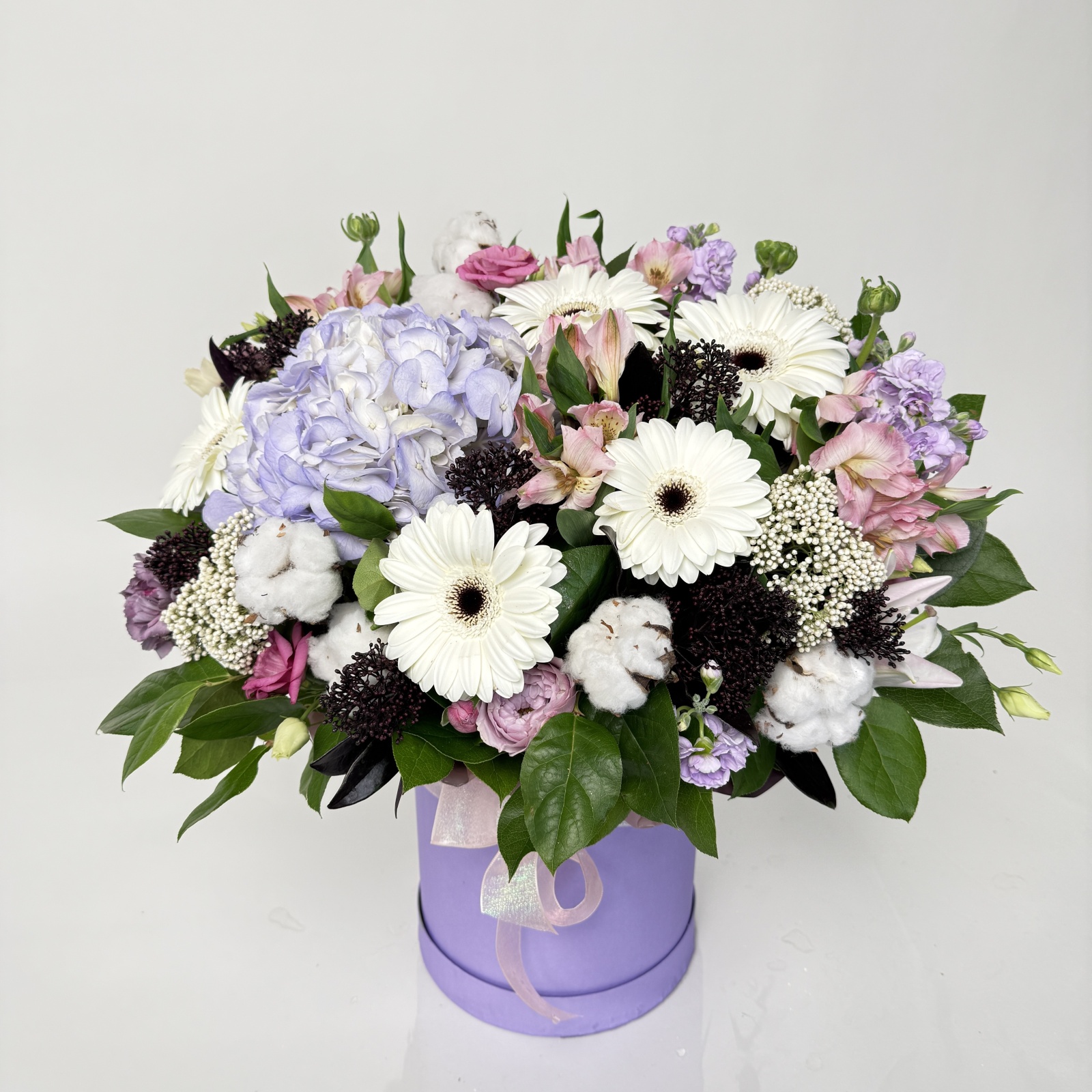 Состав: гербера 5, альстромерия 4, маттиола 3, салал 1, гвоздика 1, гортензия 1 и прочее. под заказ