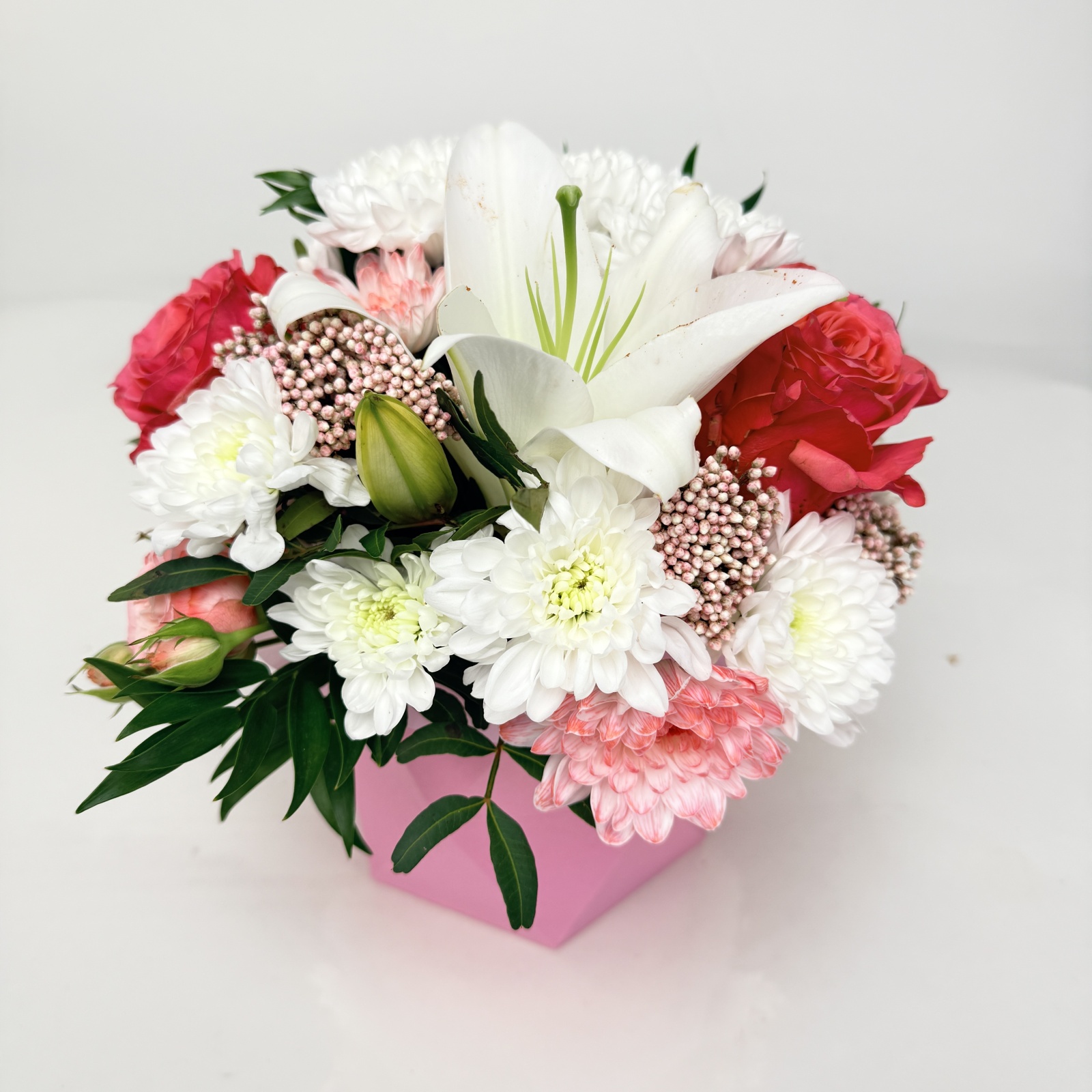 Состав: роза 3, хризантема кустовая 2, лилия 1, фисташка 0,5 и прочее. в наличии