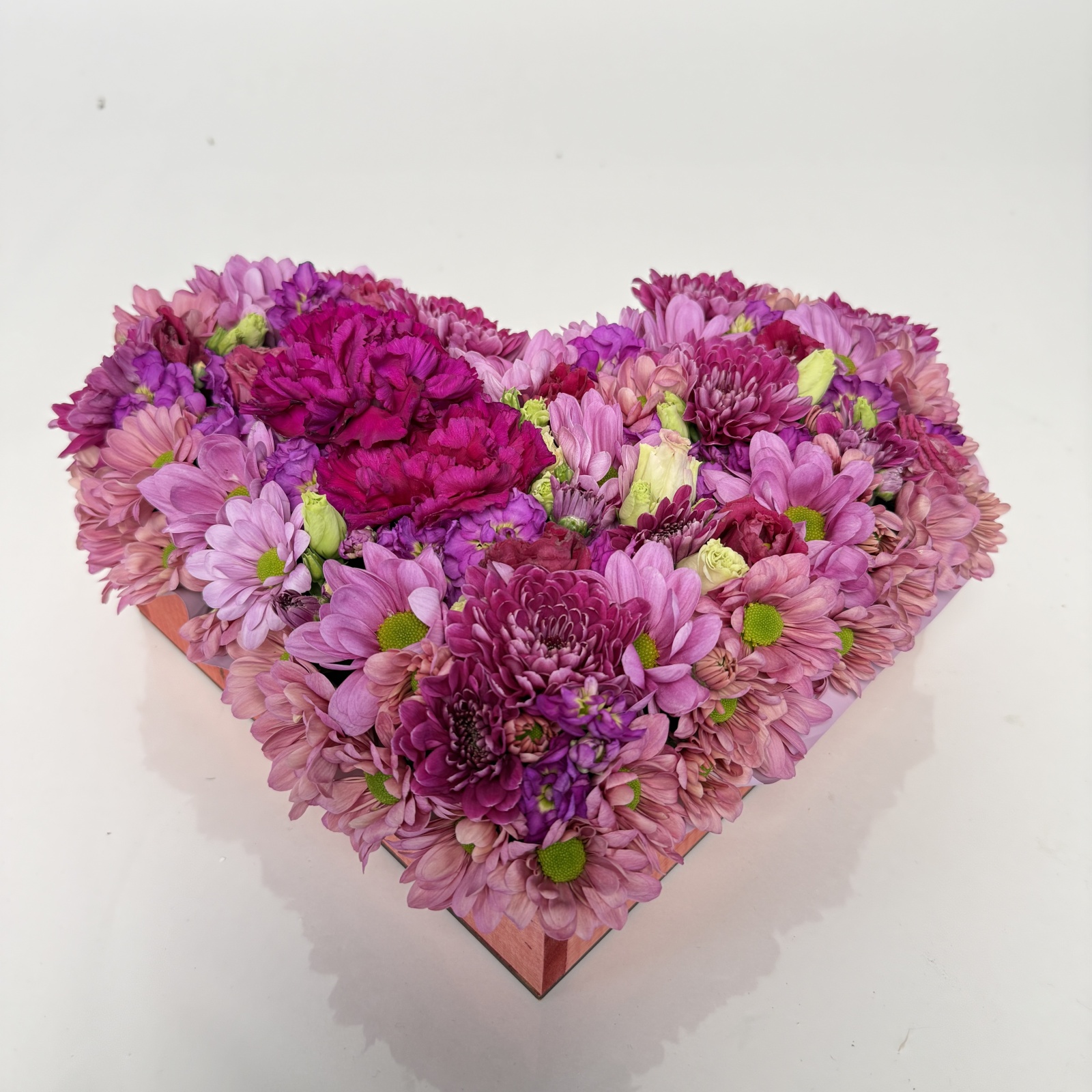 Состав: маттиола 4, гвоздика 2, хризантема кустовая 2, лизиантус 2, и прочее. в наличии
