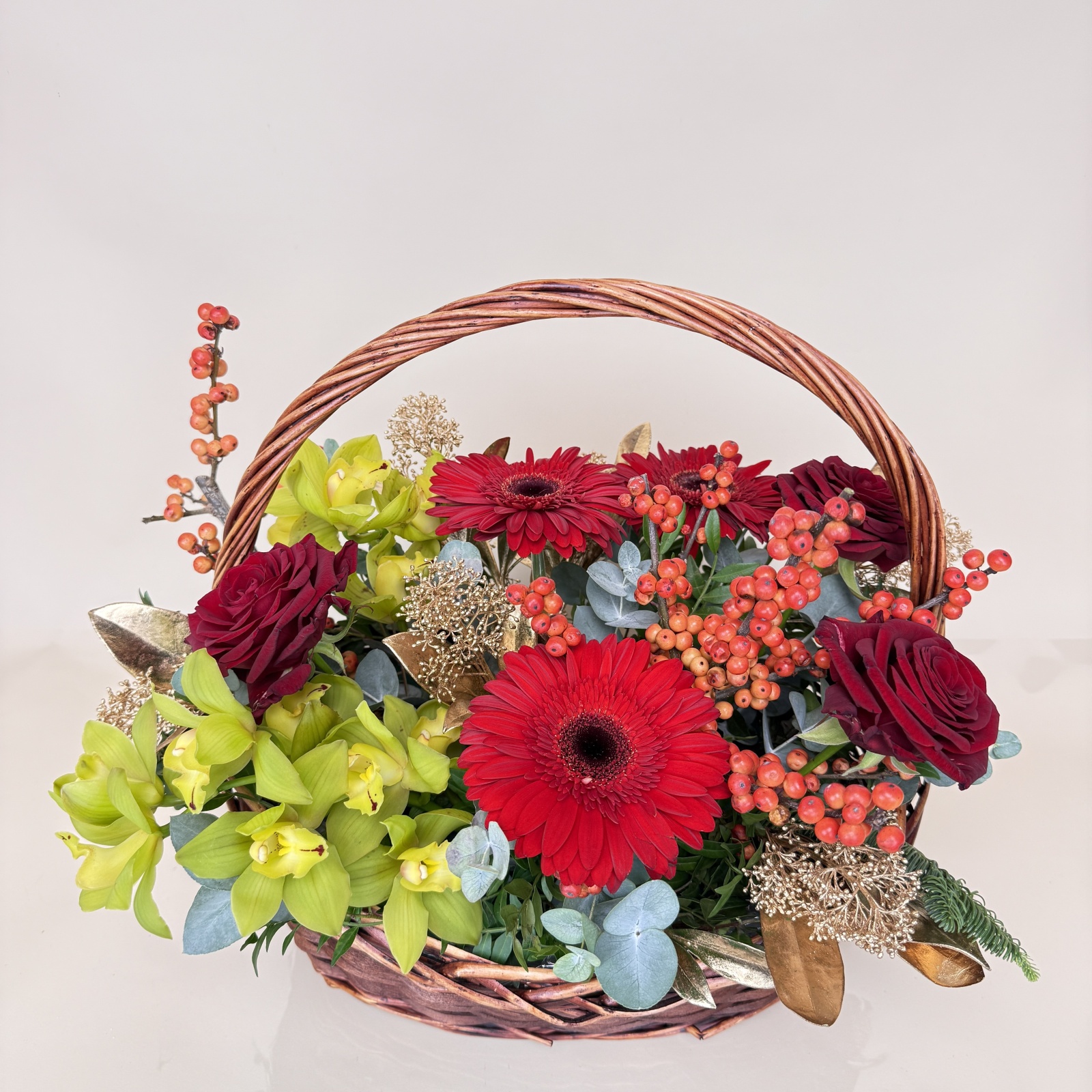 Состав: гербера 2, ветка цимбидиум 1 и прочее.