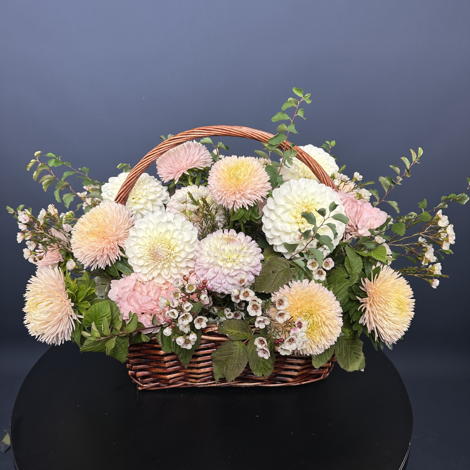 Состав: роза 3, гортензия 3, хамелациум 3 и прочее.