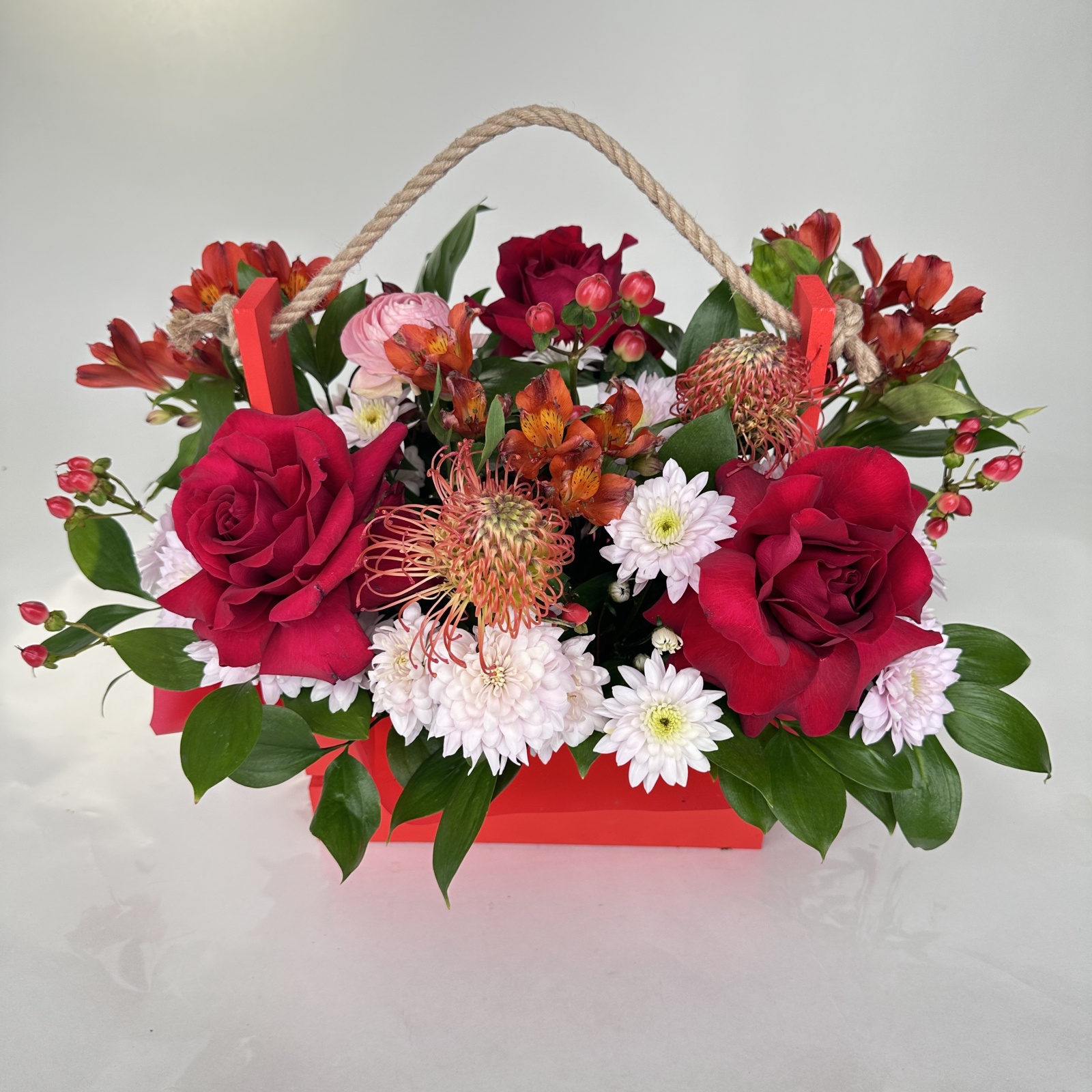 Состав: хризантема кустовая 4, роза 3, альстромерия 3, гиперикум 1, ранункулюс 1, рускус 0,5 и прочее. под заказ