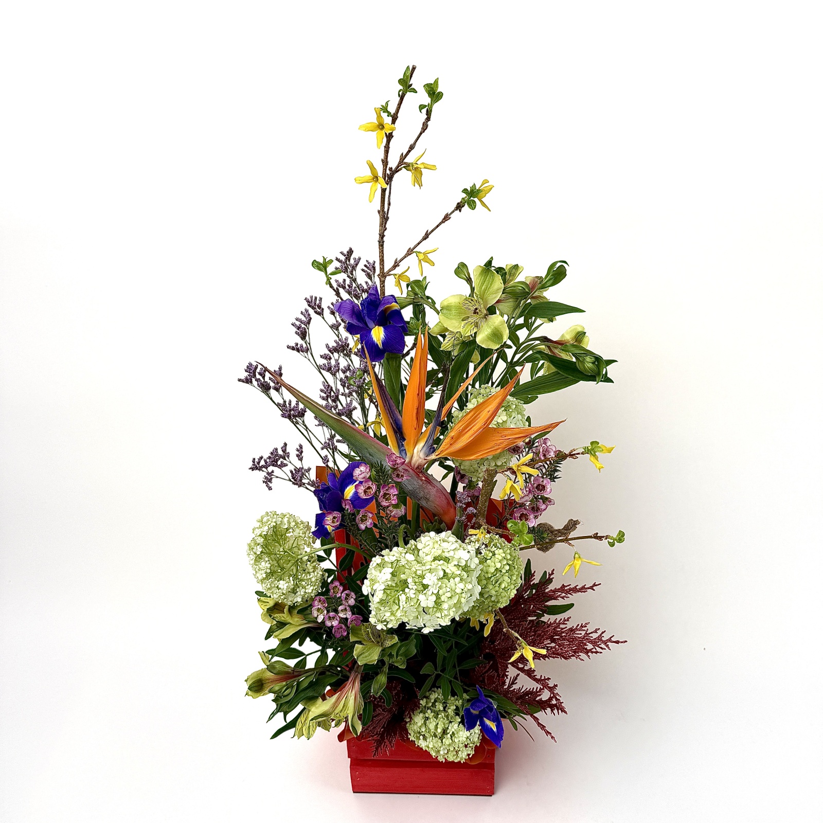 Состав: ирис 3, альстромерия 2, вибурнум 1, фисташка 0,4 и прочее. в наличии