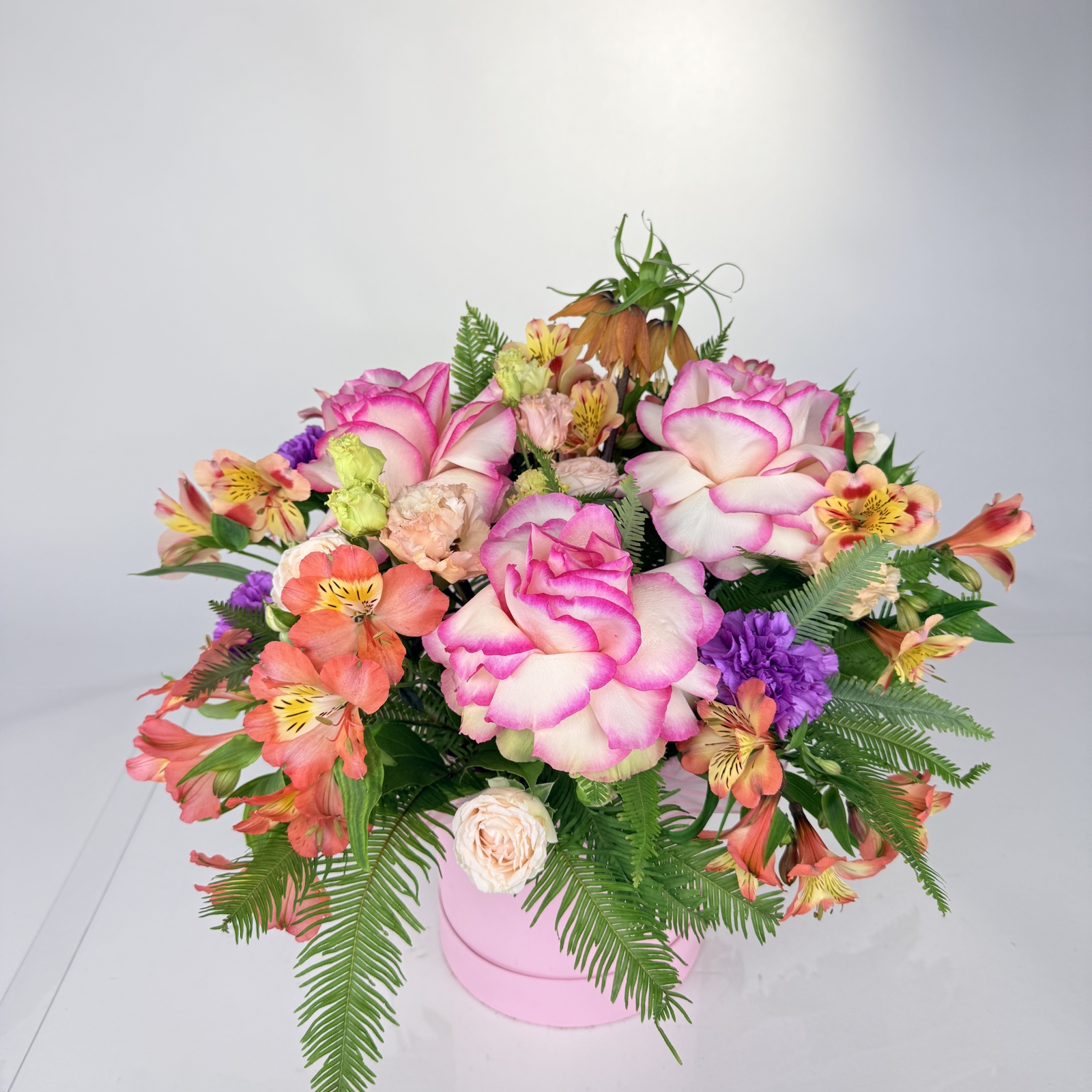 Состав: альстромерия 6, гвоздика 3, роза 3, роза кустовая 1, гортензия 1, лизиантус 1 и прочее. под заказ