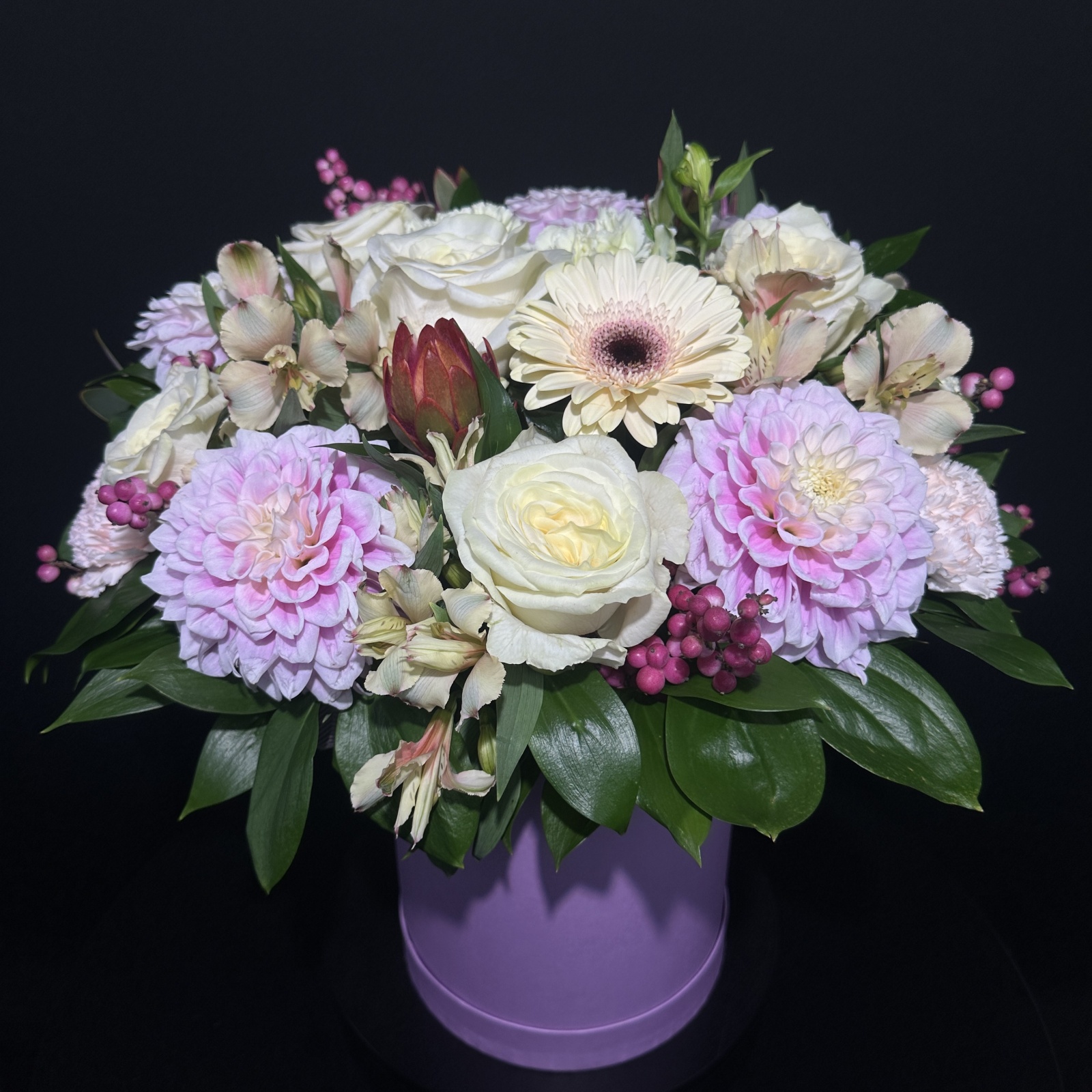 Состав: роза 5, альстромерия 5, гвоздика 5, леукадендрон 3, гербера 1, рускус 0,5 и прочее. под заказ