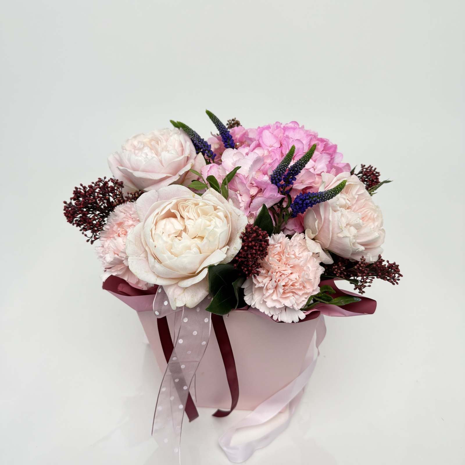 Состав: роза 5, гвоздика 3, гортензия 1 и прочее. в наличии