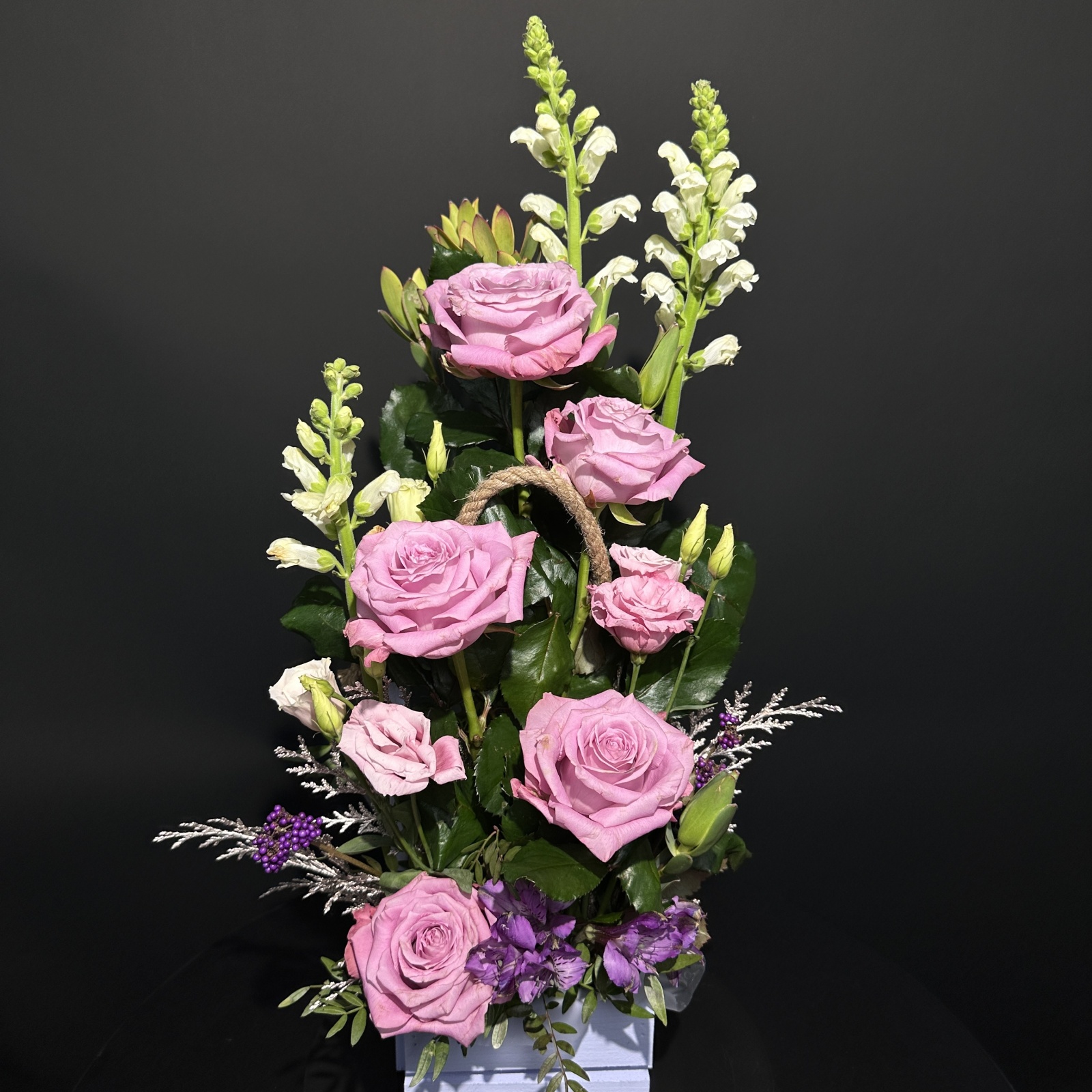 Состав: роза 4, антирринум 3, леукадендрон 1, лизиантус 1 и прочее. под заказ