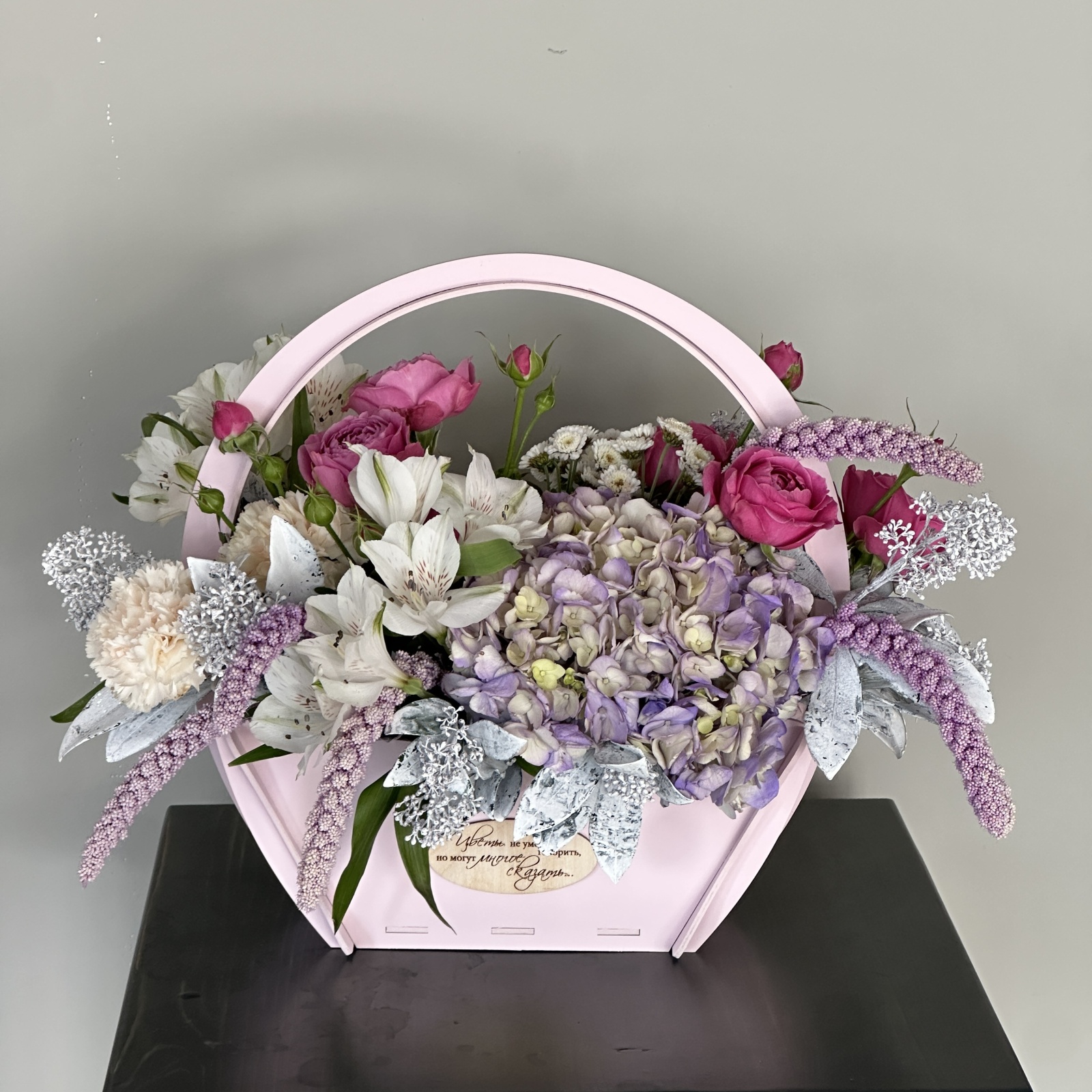Состав: роза кустовая 4, гвоздика 3, альстромерия 2, хризантема кустовая 1, гортензия 1 и прочее. под заказ