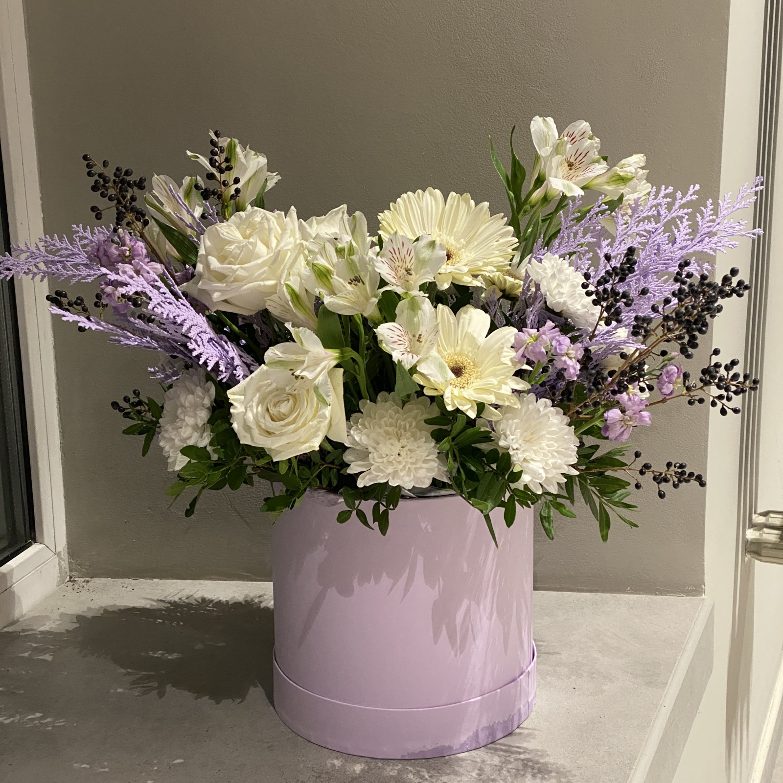 Состав: роза 3, альстромерия 3, гербера 3, хризантема кустовая 2, маттиола 1, фисташка 0,5 и прочее. под заказ