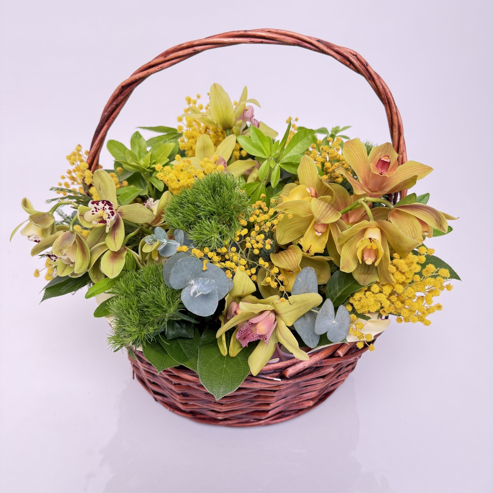 Состав: гвоздика 4, ветка цимбидиум 3 и прочее. в наличии