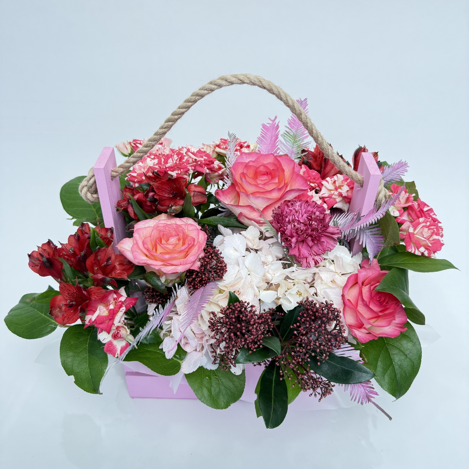 Состав: альстромерия 3, роза кустовая 3, роза 2, гортензия 1 и прочее. в наличии