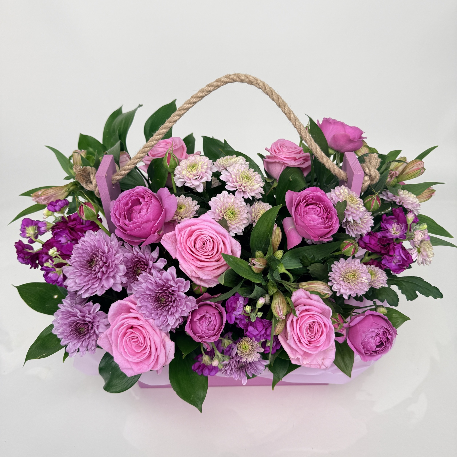Состав: роза 5, альстромерия 3, хризантема кустовая 3, маттиола 2, роза кустовая 1, рускус 0,5 и прочее. в наличии