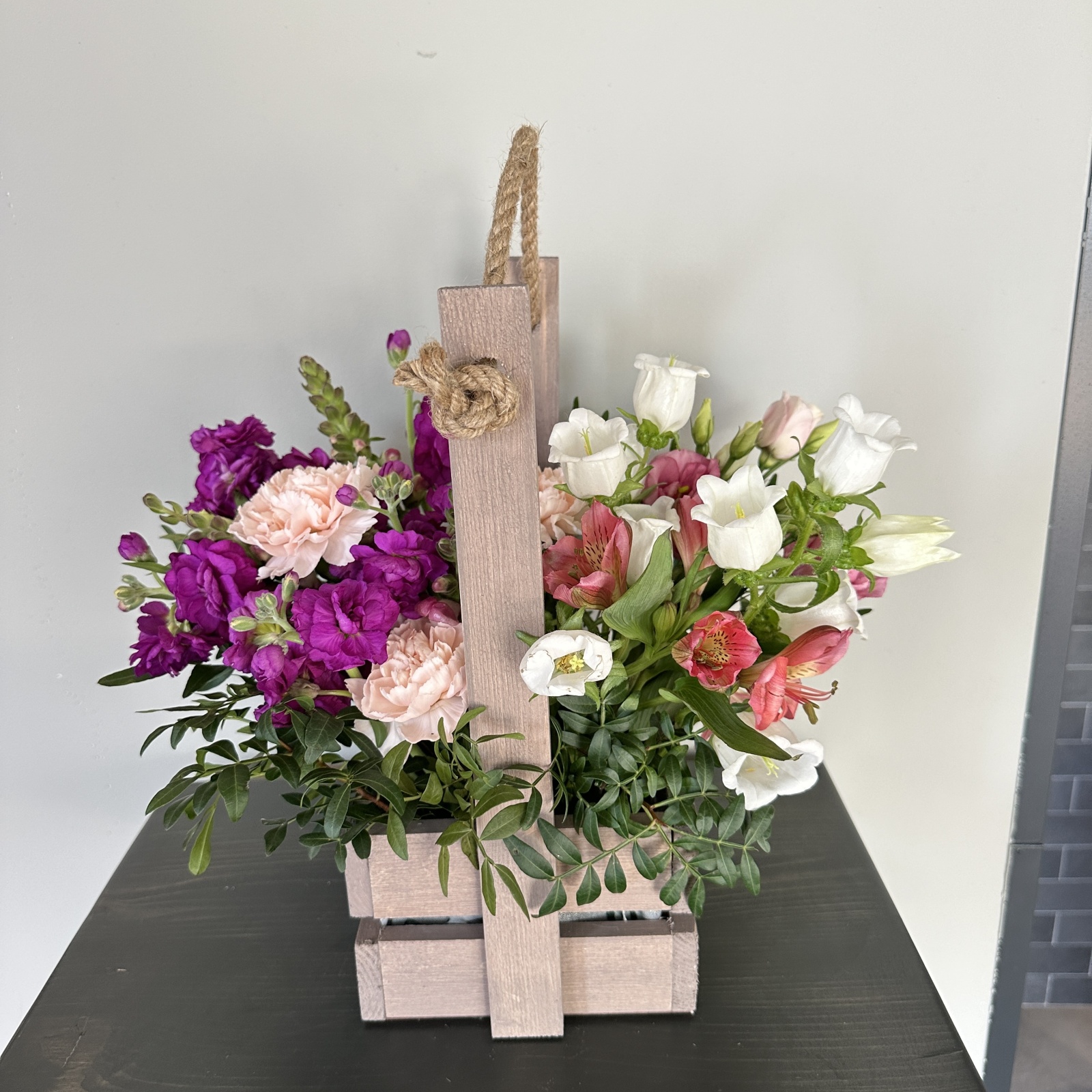 Состав: гвоздика 3, антирринум 3, маттиола 1, альстромерия 1, фисташка 0,2 и прочее.