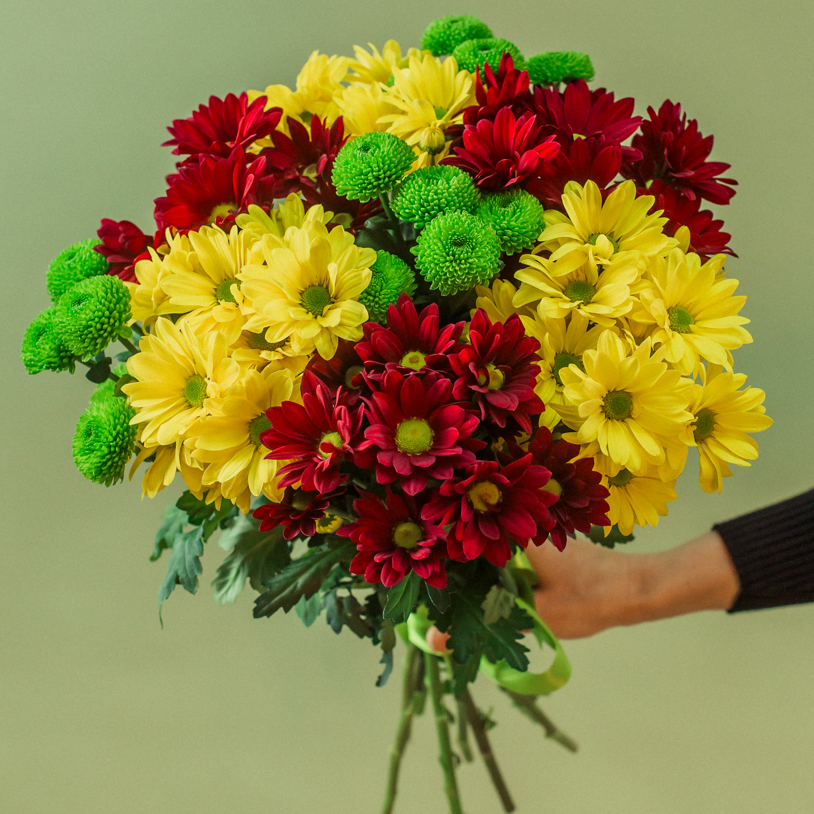 Букет из разноцветных хризантем (9 шт.) в наличии