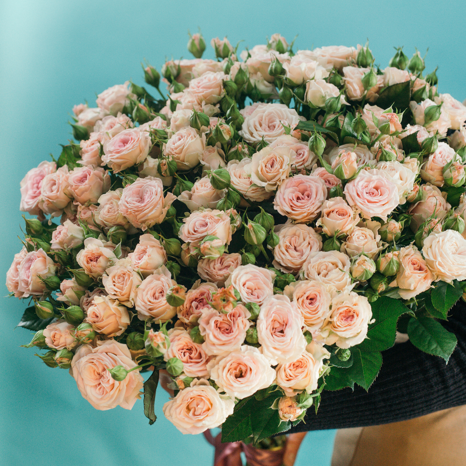19 кустовых пионовидных нежно-розовых роз (Россия)