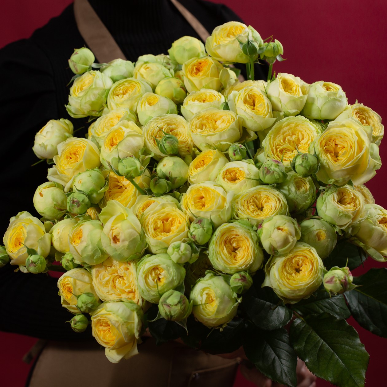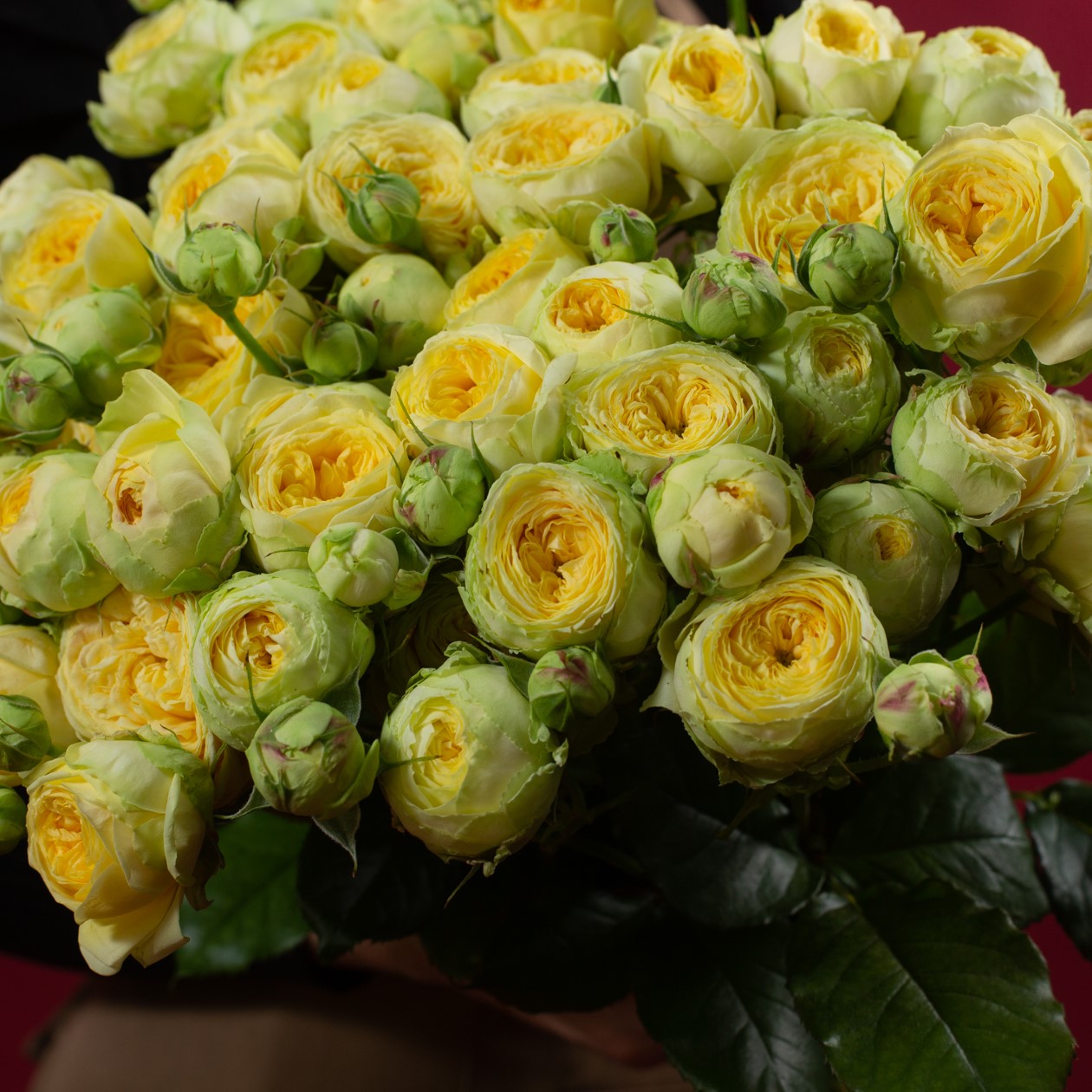 11 кустовых пионовидных желтых роз (Россия)
