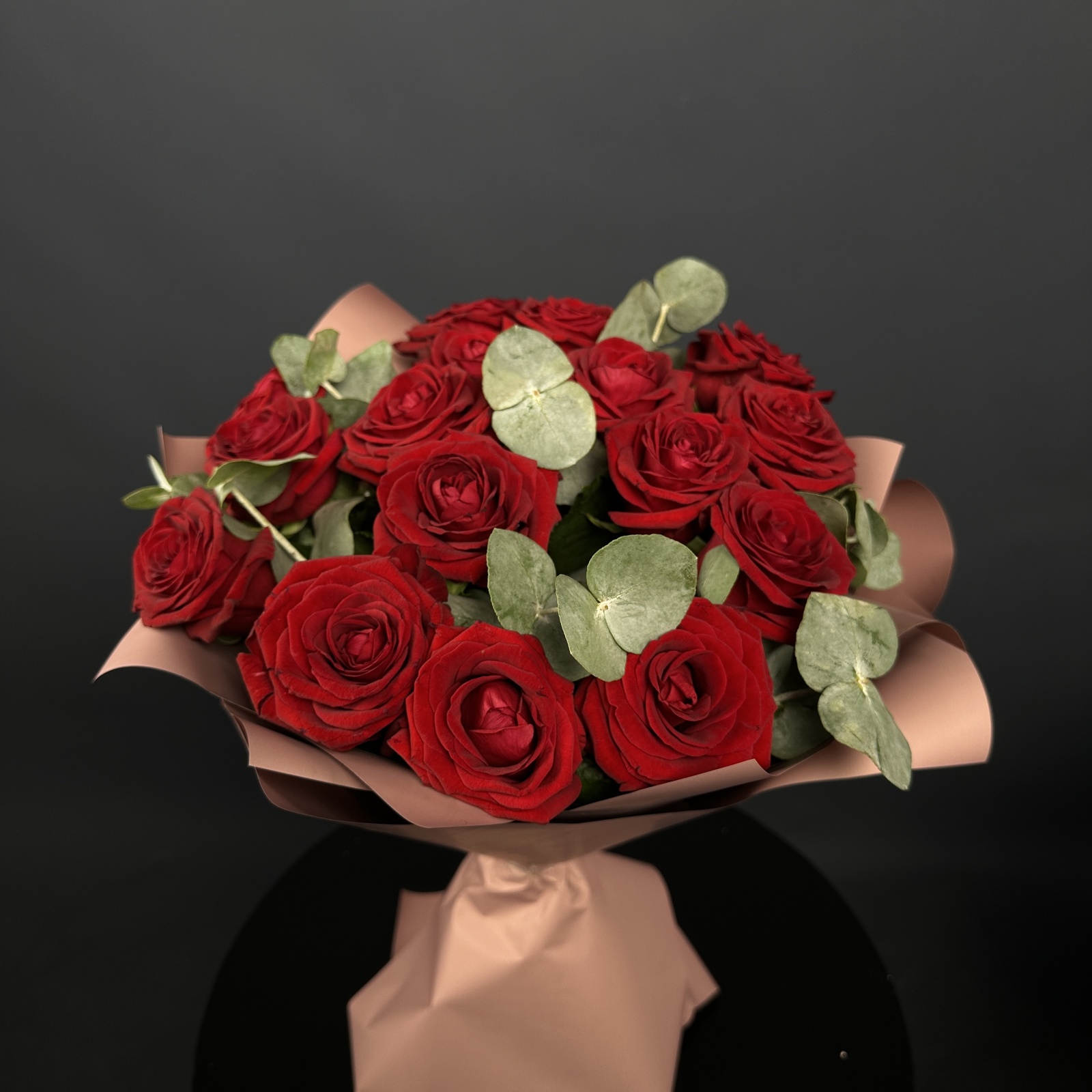 Состав: роза 15, эвкалипт 2 и прочее.