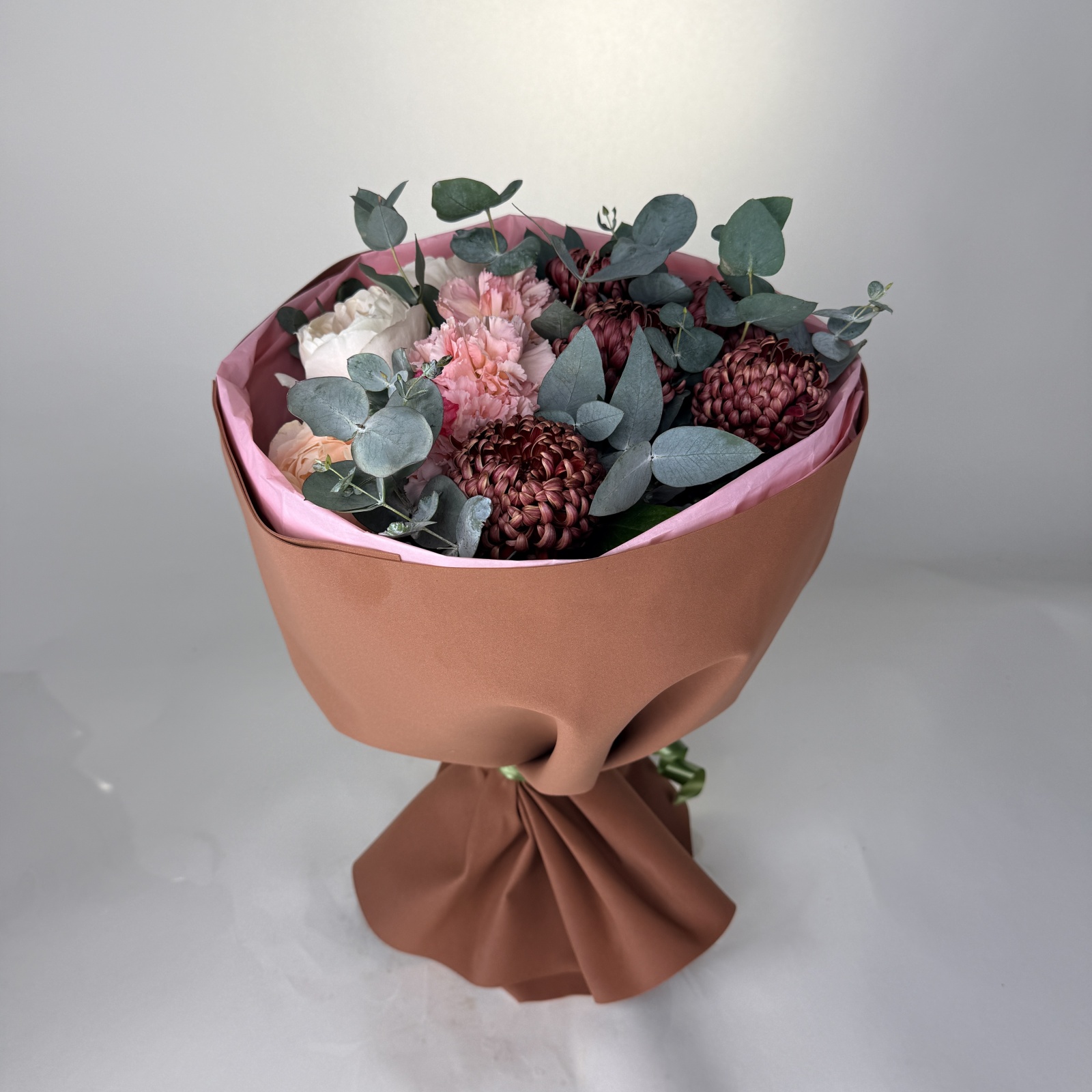 Состав: хризантема 5, роза 5, гвоздика 3 и прочее. под заказ