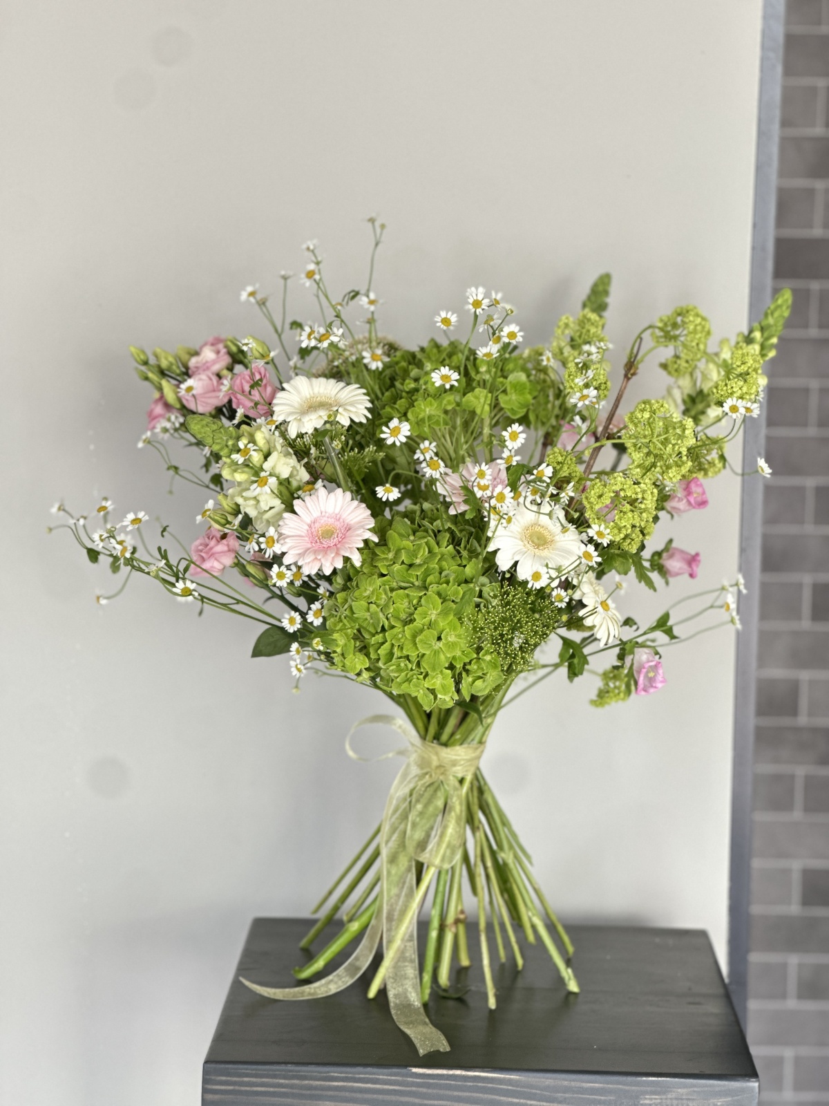 Состав: гербера 6, антирринум 3, вибурнум 3, гортензия 2, лизиантус 1 и прочее. в наличии